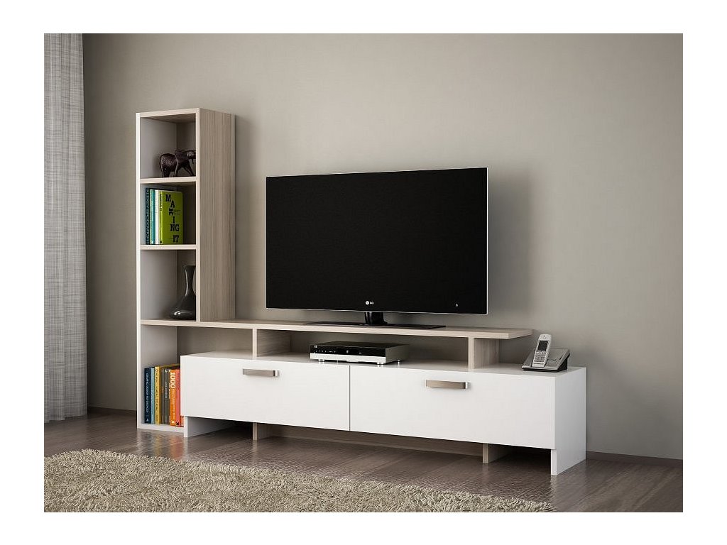 Şimal TV stolek s regálem, bílá / dub Cordoba