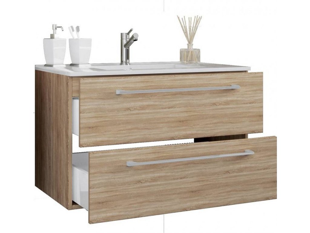 2dílná umyvadlová skříňka Badinos 2 zásuvky 60 cm, dub sonoma