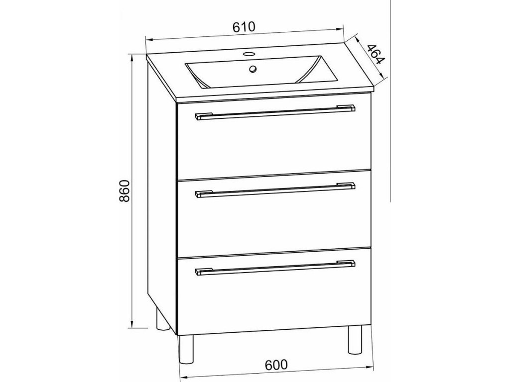 Hlavní vlastnosti: Sada obsahuje: - 1x Spodní skříňku se 3 zásuvkami - 1x Keramické umyvadlo Tato sada je specialitou pro vaši ložnici. Sada obsahuje jednu skříňku pod umyvadlo se dvěma zásuvkami. Moderní keramické umyvadlo a zrcadlo nabízejí dostatek úložného prostoru pro hygienické potřeby a další náčiní. Spodní skříňka pod umyvadlo: - Rozměry cca V 86 x Š 60 x H 46 cm - Korpus vyrobený z pevného a odolného melaminu - Tři velké zásuvky s dlouhou životností kovových kolejnic - Madlo v hliníkovém vzhledu - Podstavec součástí balení Umyvadlo: - Rozměry cca V 17 x Š 60 x H 46 cm - Odolná keramika Mycí stanici lze kombinovat s dalším nábytkem ze série „VCM VCB“.