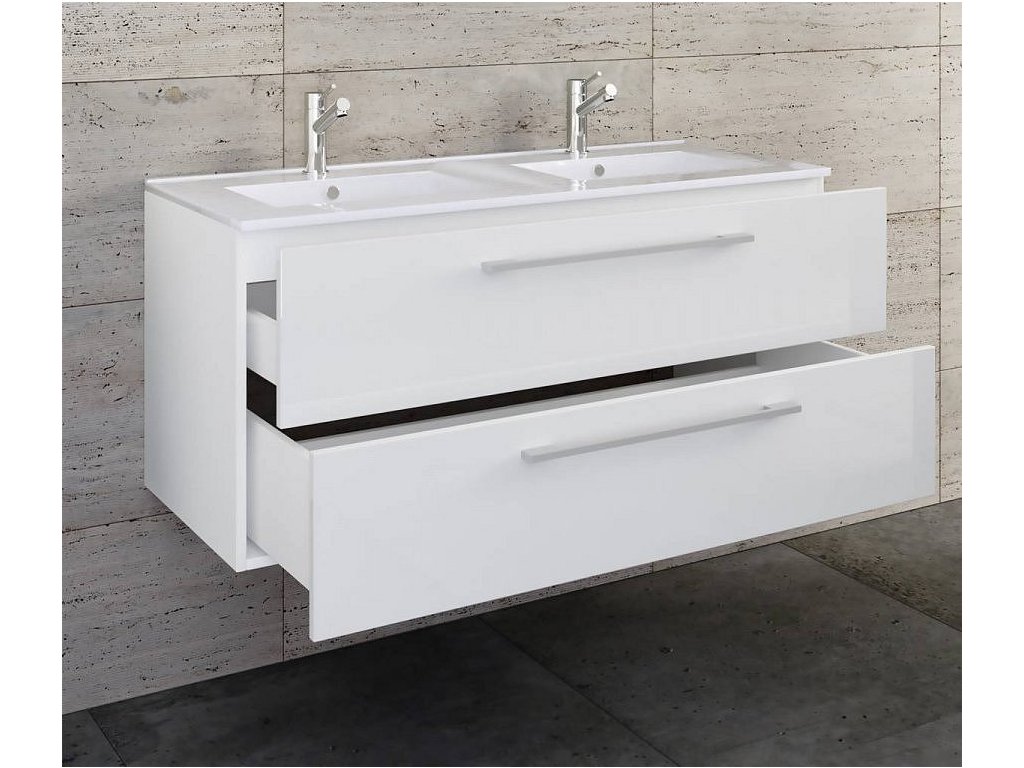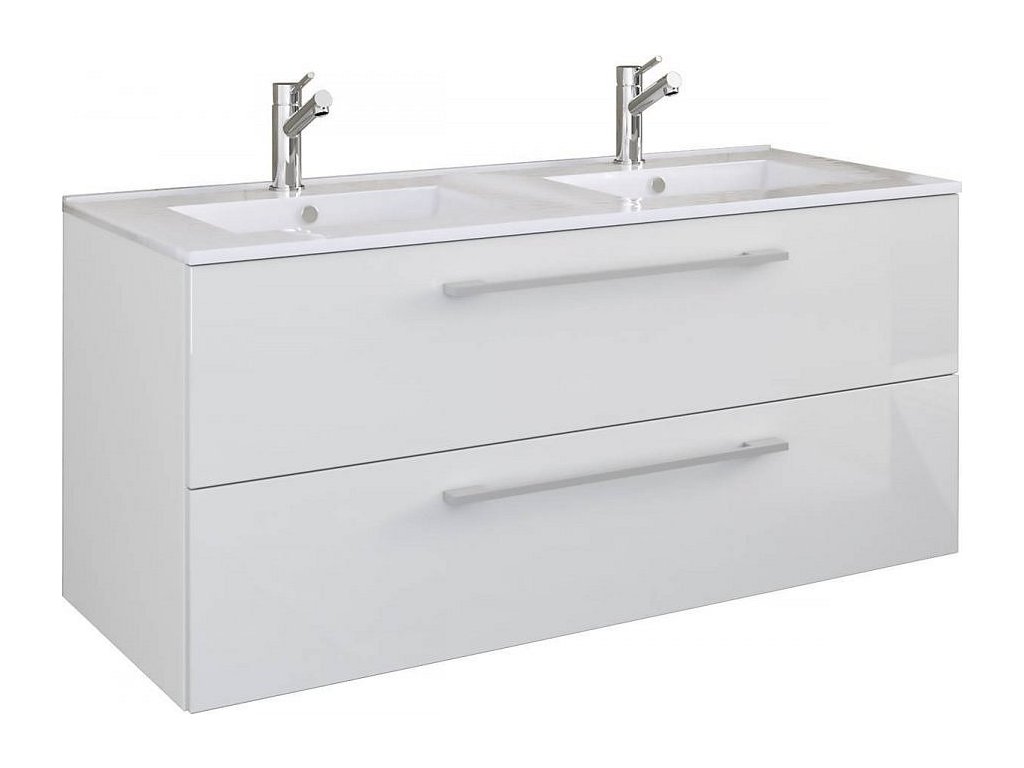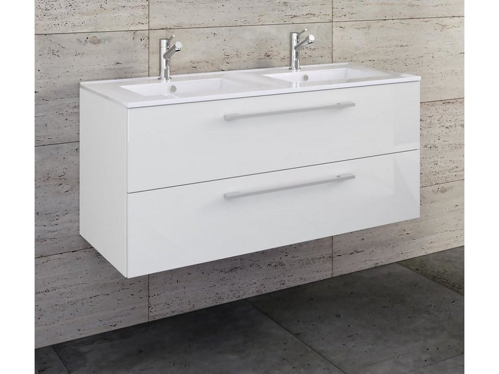 Sada obsahuje: - 1x spodní skříňka se dvěma zásuvkami - 1x dvojité keramické umyvadlo Sada koupelnového nábytku VCM "Budasi" se skládá ze spodní skříňky se dvěma zásuvkami na stabilních kovových kolejnicích. Moderní dvojité umyvadlo z masivní keramiky slouží jako poutač pohledů a dodává vaší koupelně velmi zvláštní atmosféru. Skříňka pod umyvadlo - rozměry cca v. 51 x š. 112 x h. 46 cm - Korpus s robustním a necitlivým melaminovým povlakem - Dvě velké zásuvky s odolnými kovovými úchytkami Dvojité umyvadlo: - Rozměry cca v. 17 x š. 110 x h. 46 cm - Vyrobeno z robustní keramiky Důraz na detail dělá z koupelnového nábytku VCM něco velmi zvláštního. Umyvadlové místo lze kombinovat s dalším nábytkem ze série "VCM Budasi".