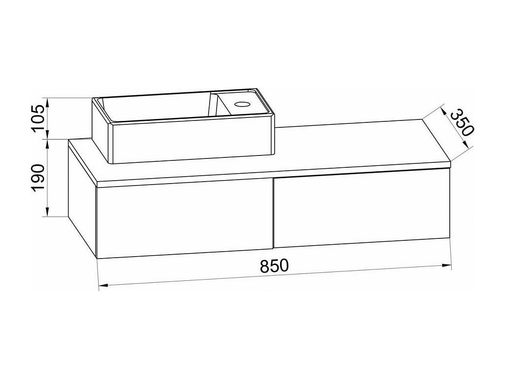 - Rozměry: v. 19 × š. 85 × h. 35 cm