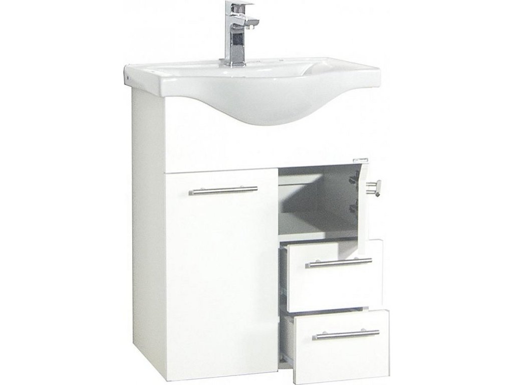 Sada se skládá z: - 1x skříňky pod umyvadlo se dvěma otočnými dvířky a dvěma zásuvkami - 1x keramického umyvadla. Koupelnová sada VCM "Lisalo" se skládá ze skříňky pod umyvadlo a umyvadla z masivní keramiky. Designér záměrně zvolil zakřivené umyvadlo, protože zvyšuje komfort. Skříňka pod umyvadlo má dvoje velké otočné dvířka a nabízí praktický úložný prostor. Skříňka pod umyvadlo: - Rozměry v. 81 x š. 52 x h. 34 cm - Korpus s robustním a odolným melaminovým povlakem - Dvoje otočné dvířka a dvě zásuvky Umyvadlo: - Rozměry Š. 55 x H. 45 cm - Vyrobeno z robustní keramiky Koupelnovou sadu lze doplnit dalším koupelnovým nábytkem ze série "Lisalo". VCM se specializuje na návrh, výrobu a distribuci nábytku s férovým poměrem cena/výkon od 70. let 20. století a již jím ozdobila miliony domácností.
