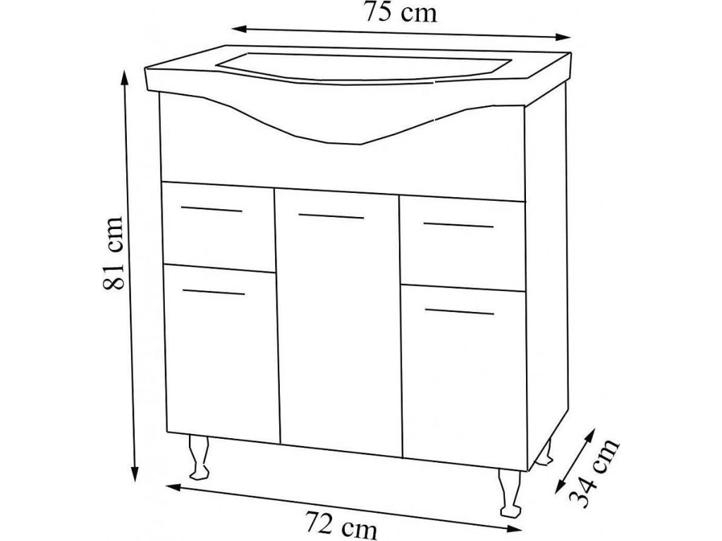 - 1x skříňky pod umyvadlo se třemi otočnými dvířky a dvěma zásuvkami