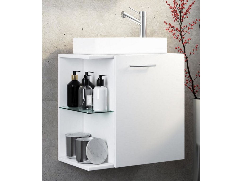 Hlavní vlastnosti: - Skříňka pod umyvadlo s umyvadlem z vysoce kvalitní keramiky - Elegantní skleněná polička - Dvě otevřené přihrádky - Velká uzavřená přihrádka - Rozměry skříňky pod umyvadlo + umyvadlo: cca v. 63 x š. 52 x h. 34 cm. Umyvadlová skříňka VCM "Hausa" se skládá ze spodní skříňky a umyvadla z masivní keramiky. Skříňka pod umyvadlo vypadá obzvláště elegantně díky otevřeným bočním přihrádkám a skleněné polici. Velké otočné dveře s další přihrádkou jsou obzvláště praktické a nabízejí dostatek prostoru pro koupelnové potřeby. Koupelnový nábytek lze doplnit osvětlením "VCM Blino". VCM se specializuje na design, výrobu a distribuci nábytku s férovým poměrem cena/výkon od 70. let a již jím ozdobila miliony domácností.