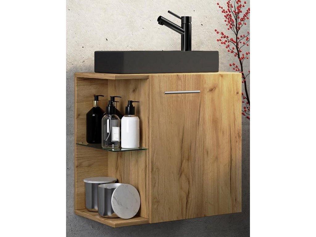 Hlavní vlastnosti: - Skříňka pod umyvadlo s umyvadlem z vysoce kvalitní keramiky - Elegantní skleněná polička - Dvě otevřené přihrádky - Velká uzavřená přihrádka - Rozměry skříňky pod umyvadlo + umyvadlo: cca v. 63 x š. 52 x h. 34 cm Umyvadlo VCM "Hausa" se skládá ze skříňky pod umyvadlo a umyvadla z masivní keramiky. Otevřené boční přihrádky a skleněná polička dodávají spodní skříňce pod umyvadlo obzvláště elegantní vzhled. Velké otočné dveře s další přihrádkou jsou obzvláště praktické a nabízejí dostatek prostoru pro koupelnové potřeby. Koupelnový nábytek lze doplnit osvětlením "VCM Blino". Od 70. let 20. století se VCM specializuje na design, výrobu a distribuci nábytku s férovým poměrem cena/výkon a již zkrášlila miliony domácností.