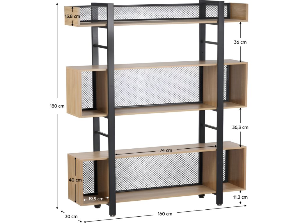 Rozměry střední police (ŠxHxV): 160x30x40 cm