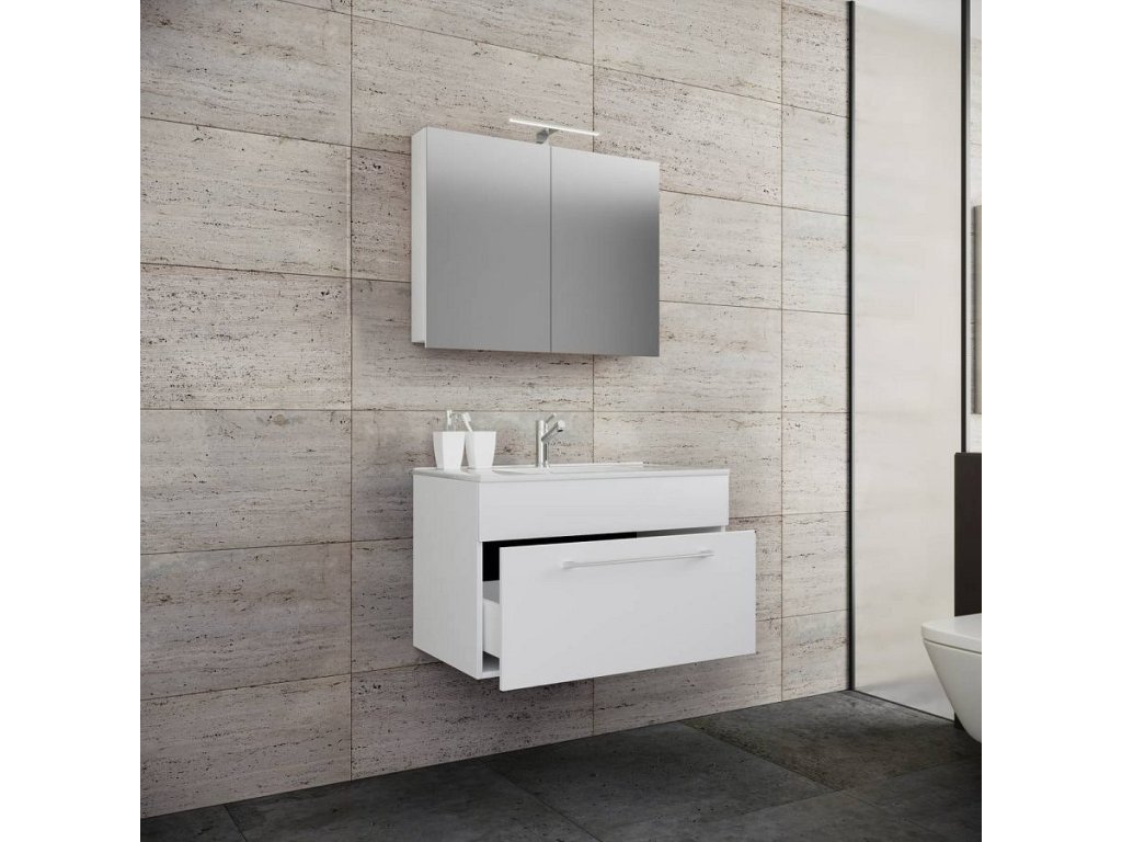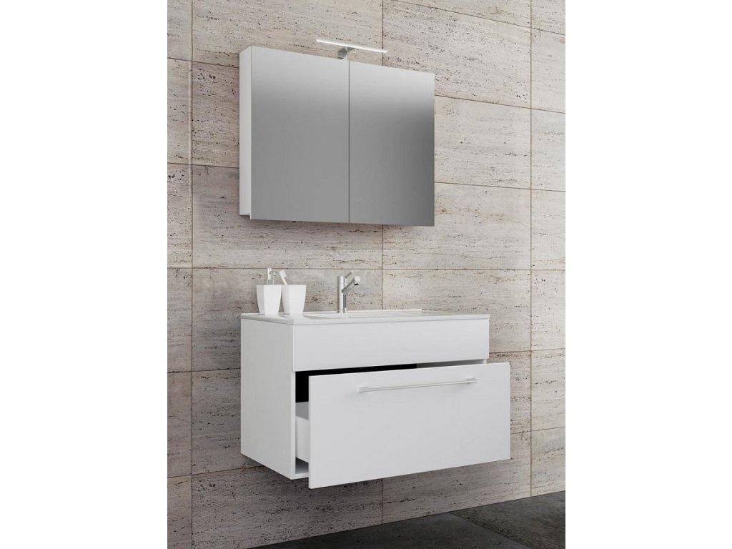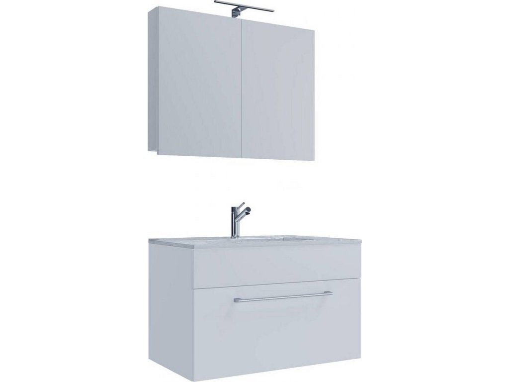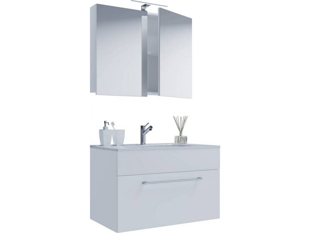 3dílná umyvadlová skříňka Badinos 1 zásuvka 60 cm se zrcadlem, bílá