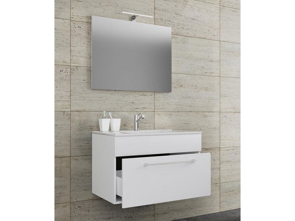 3dílná umyvadlová skříňka Badinos 1 zásuvka 60 cm se zrcadlem, bílá
