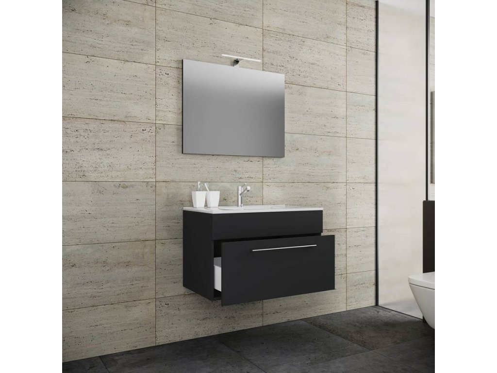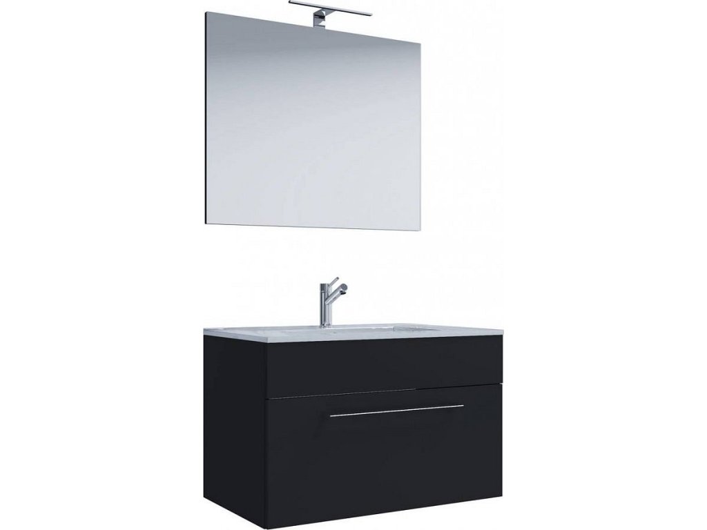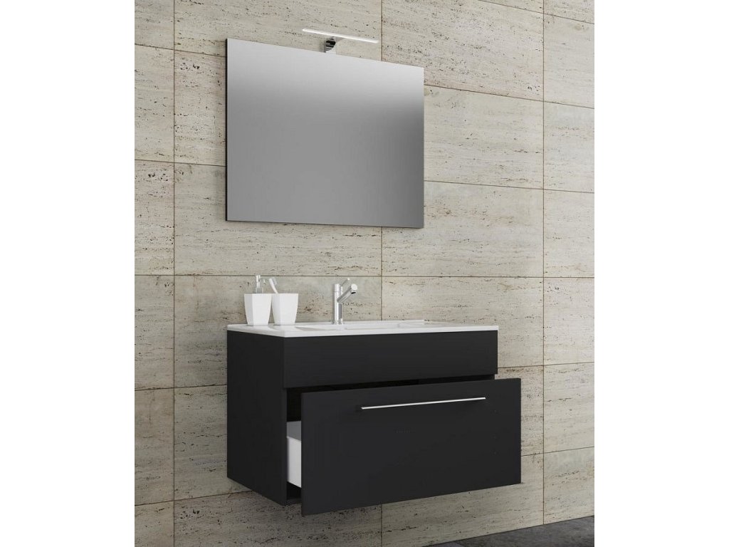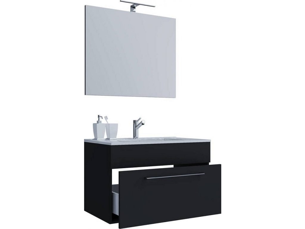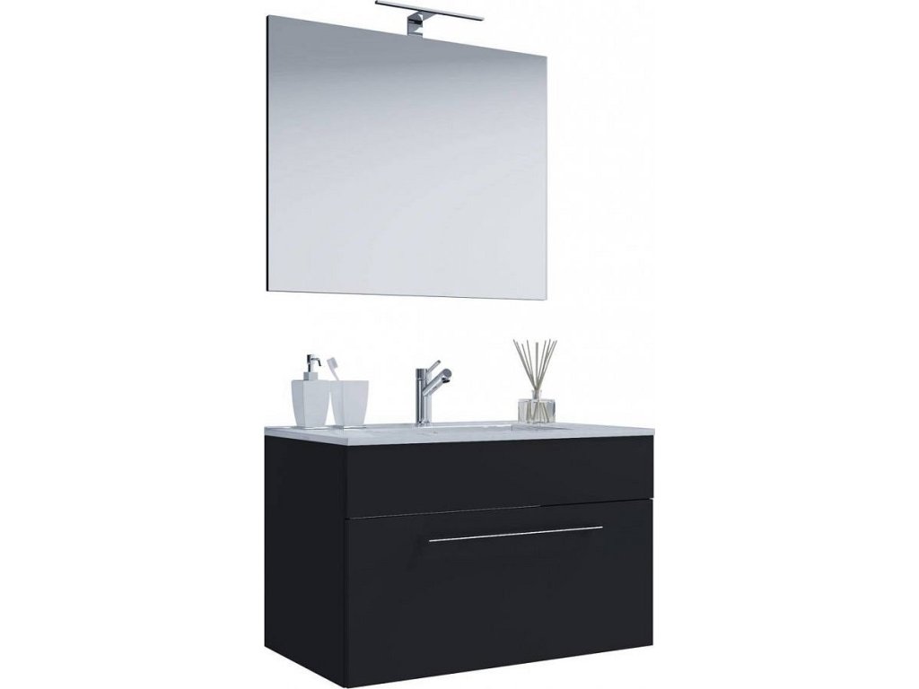 3dílná umyvadlová skříňka Badinos 1 zásuvka 60 cm se zrcadlem, černá