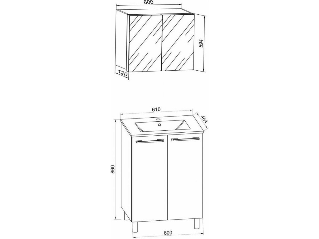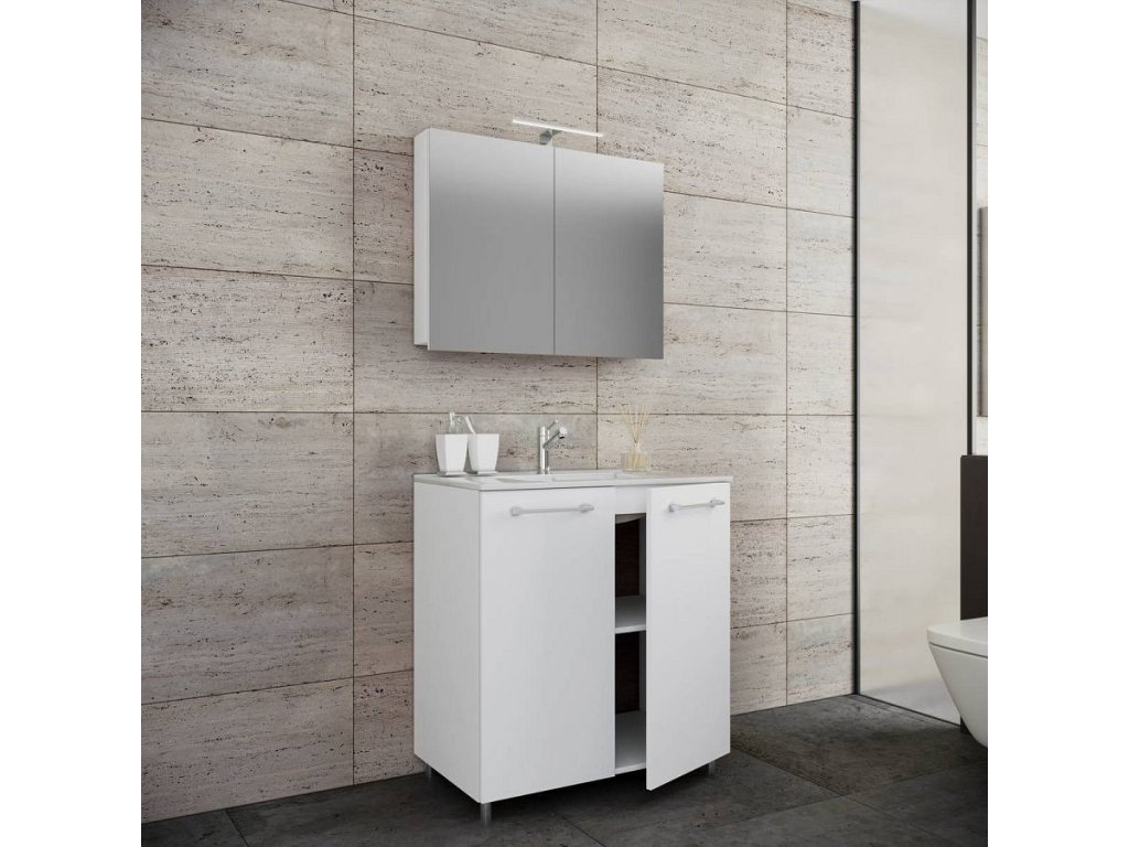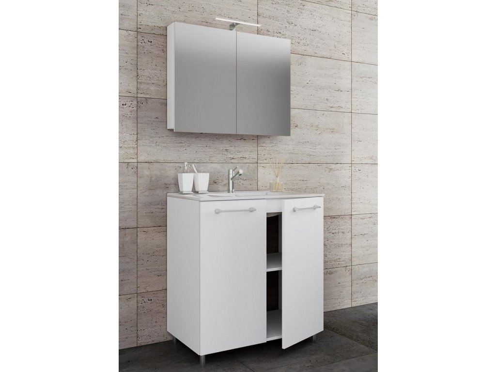 3dílná umyvadlová skříňka Badinos 2 dveře 60 cm se zrcadlem, bílá