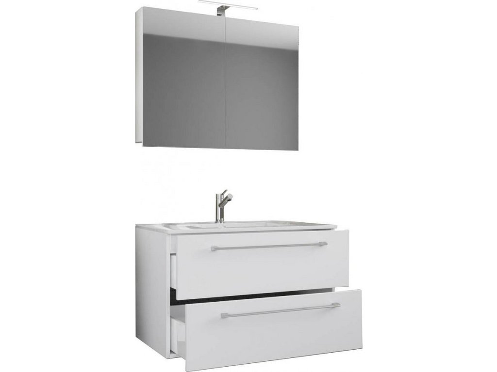 3dílná umyvadlová skříňka Badinos 2 zásuvky 80 cm se zrcadlem, bílá