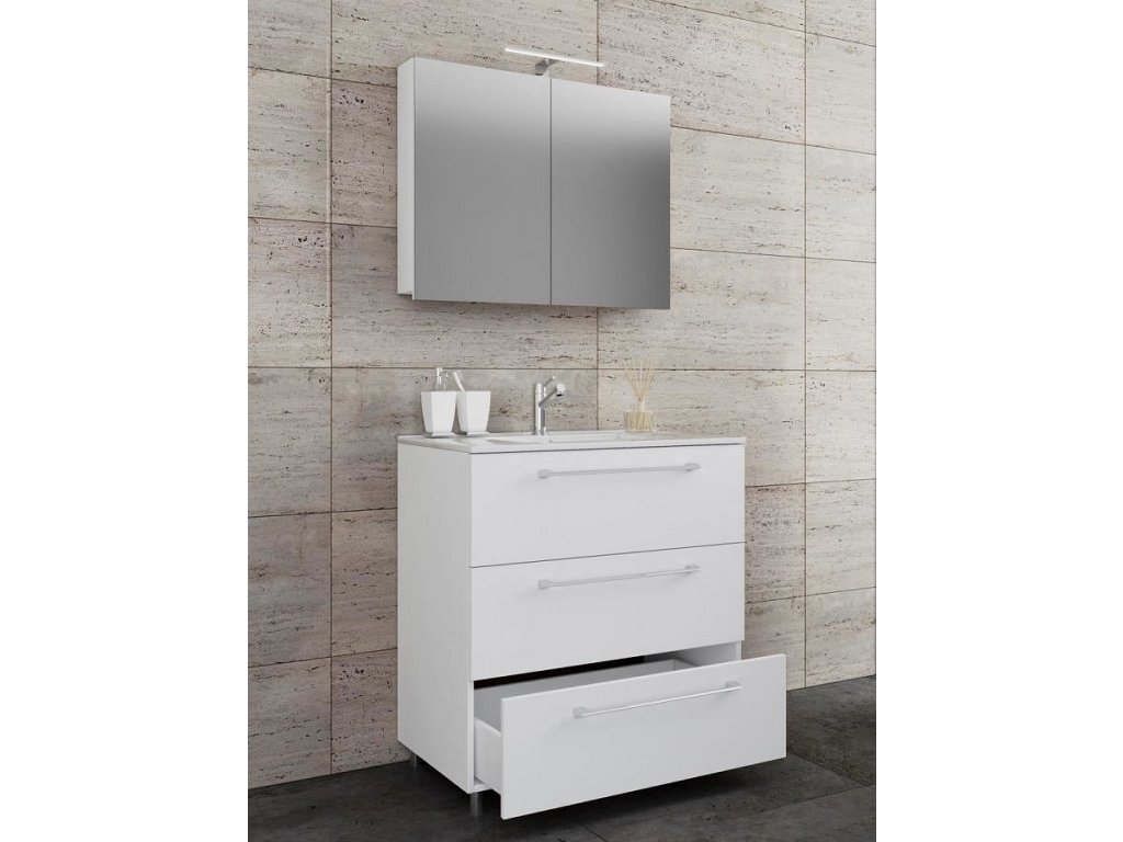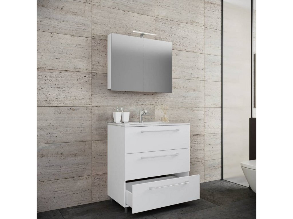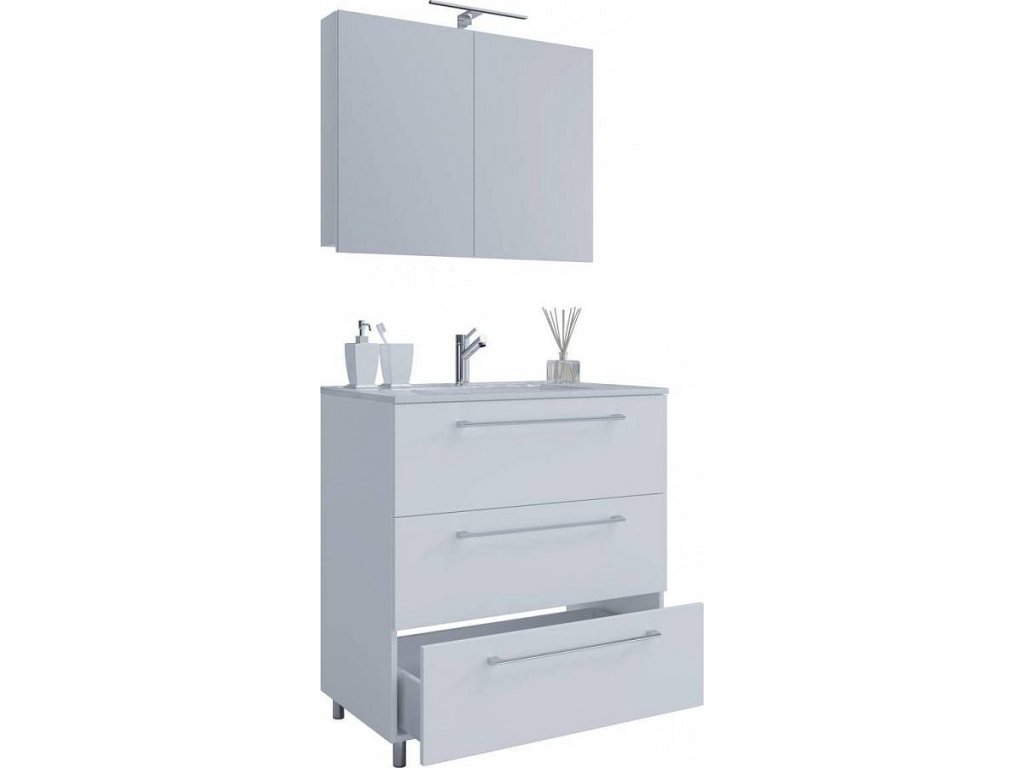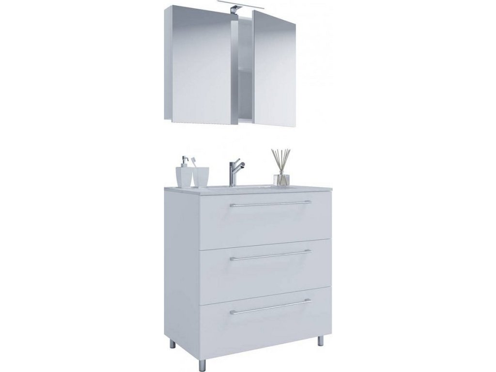 3dílná umyvadlová skříňka Badinos 3 zásuvky 60 cm se zrcadlem, bílá