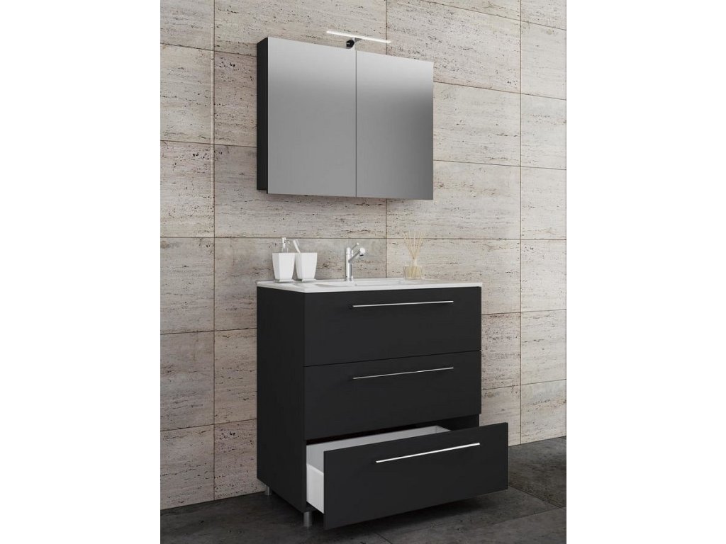3dílná umyvadlová skříňka Badinos 3 zásuvky 60 cm se zrcadlem, černá