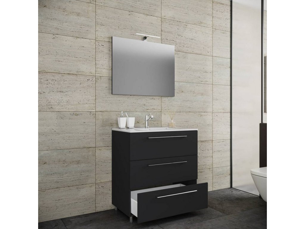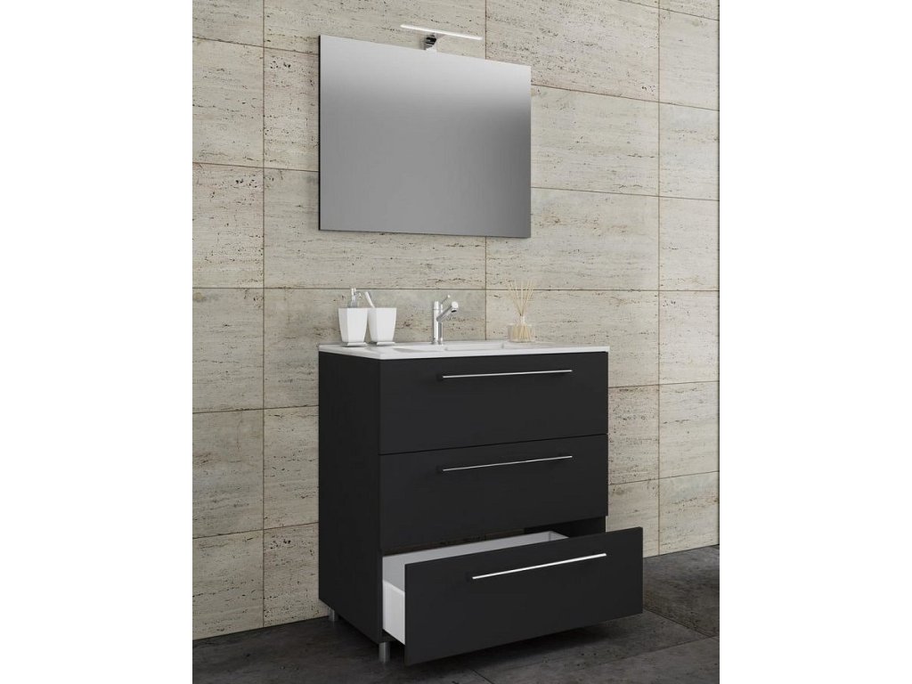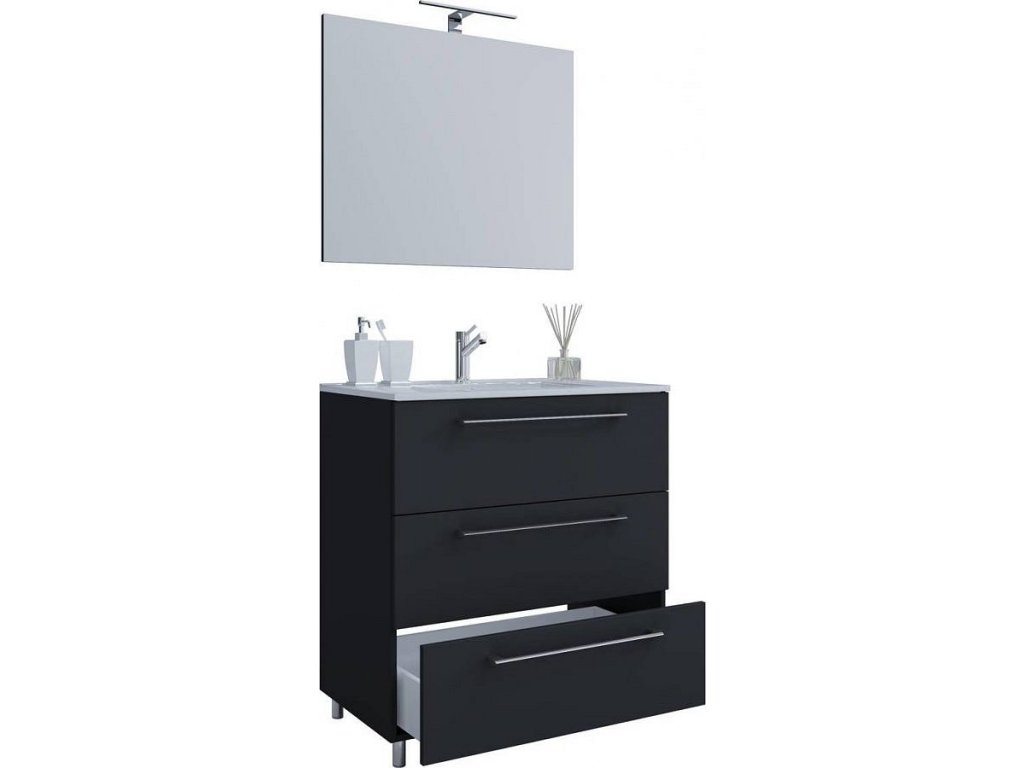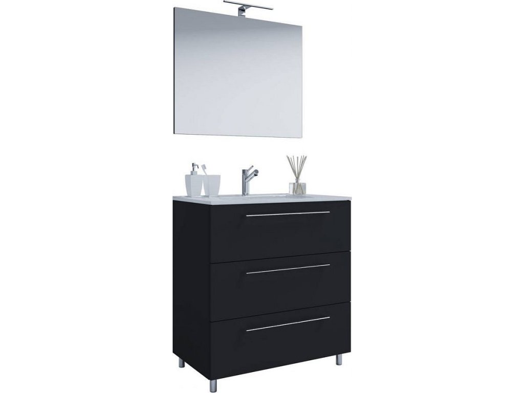 3dílná umyvadlová skříňka Badinos 3 zásuvky 60 cm se zrcadlem, černá