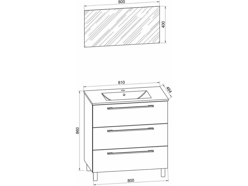3dílná umyvadlová skříňka Badinos 3 zásuvky 80 cm se zrcadlem, bílá