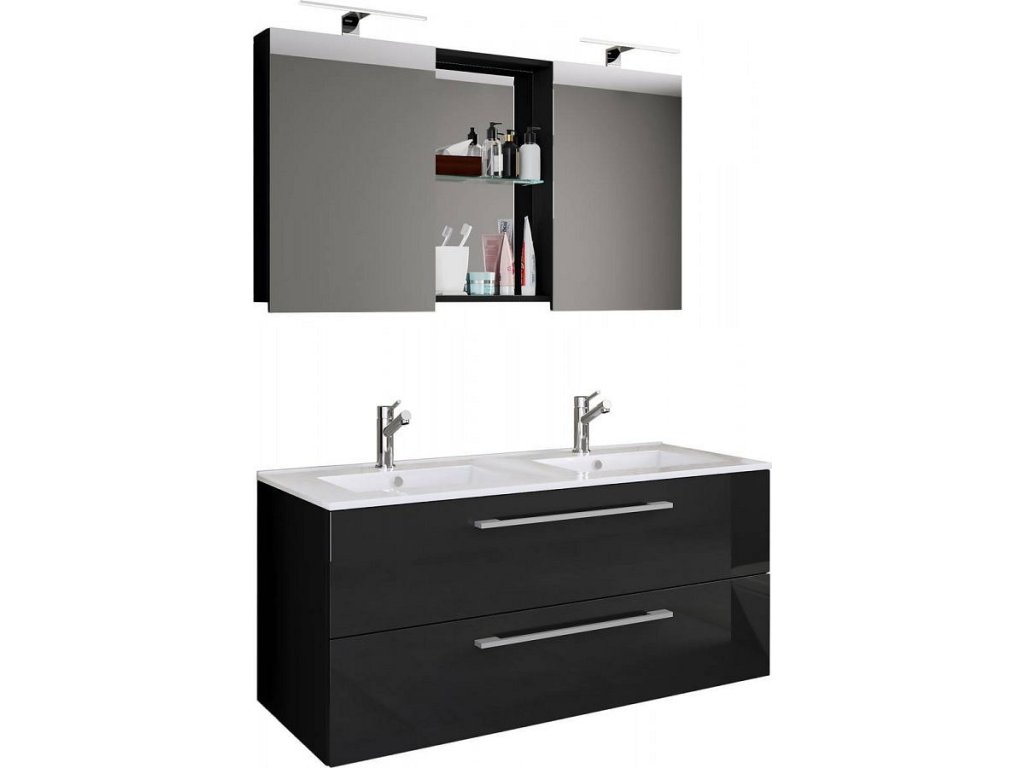3dílná umyvadlová skříňka Budasi se zrcadlem, černá