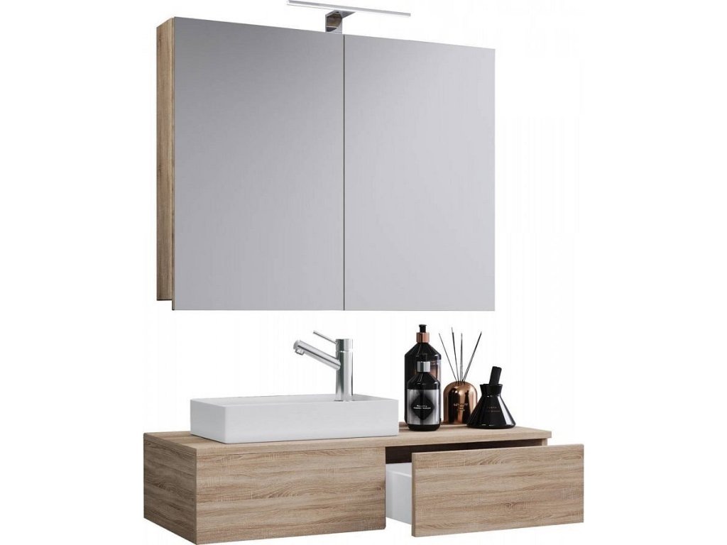 3dílná umyvadlová skříňka Gudas se zrcadlem, dub Sonoma