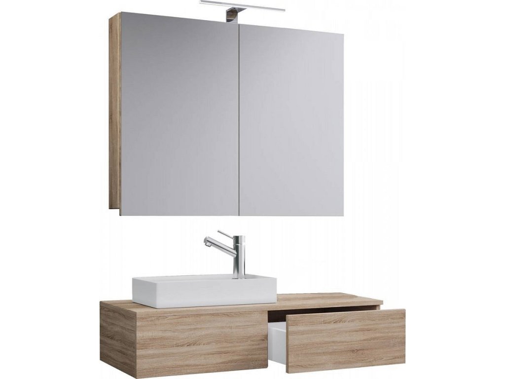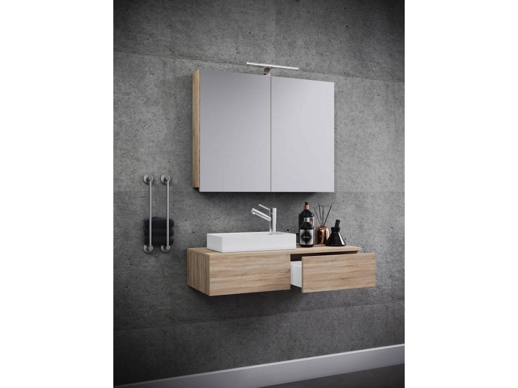Sada obsahuje: - 1x spodní skříňka se zásuvkou - 1x keramické umyvadlo - 1x zrcadlová skříňka z odolného skla Mycí prostor šetří místo. Sada se skládá ze zrcadlové skříňky a umyvadla s umyvadlovou skříňkou. Velmi elegantní řešení pro toalety nebo toalety pro hosty, které dodá vizuálnímu užitku. Skříňka pod umyvadlo: - Rozměry V 14 x Š 85 x H 35 cm - Korpus z robustního a odolného melaminu - Velká zásuvka s kovovými panty - Kovová rukojeť v hliníkovém vzhledu Umyvadlo: - Rozměry V 21 x Š 40 x H 22 cm - Vyrobeno z robustní keramiky Zrcadlová skříňka: - Rozměry cca V 62 x Š 80 x H 12 cm - Zrcadlo z odolného skla - Dvoje otočné dvířka a police za nimi - Jednoduchá a bezpečná montáž na zeď Důraz na detail dělá z koupelnového nábytku VCM něco velmi speciálního. Mycí prostor lze kombinovat s dalším nábytkem a doplňky ze série „VCM VCB“.