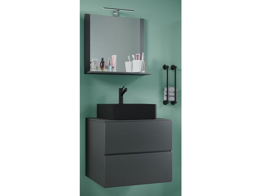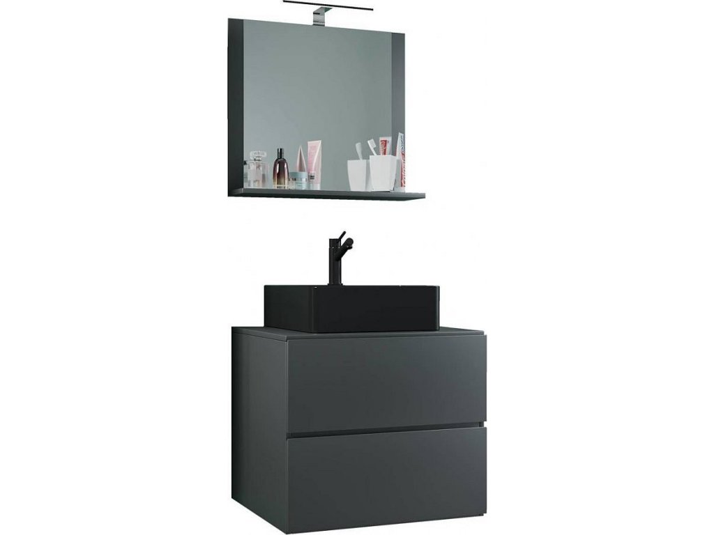 3dílná umyvadlová skříňka Lendas BL M 60 cm se zrcadlem, antracitová