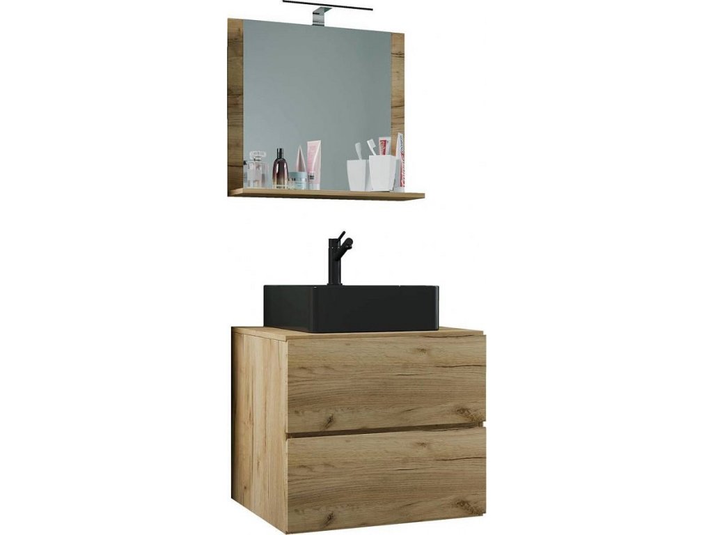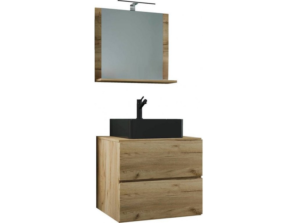 3dílná umyvadlová skříňka Lendas BL M 60 cm se zrcadlem, dub medový