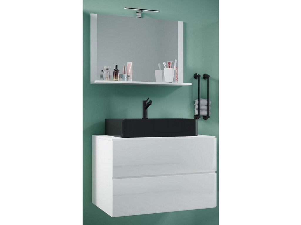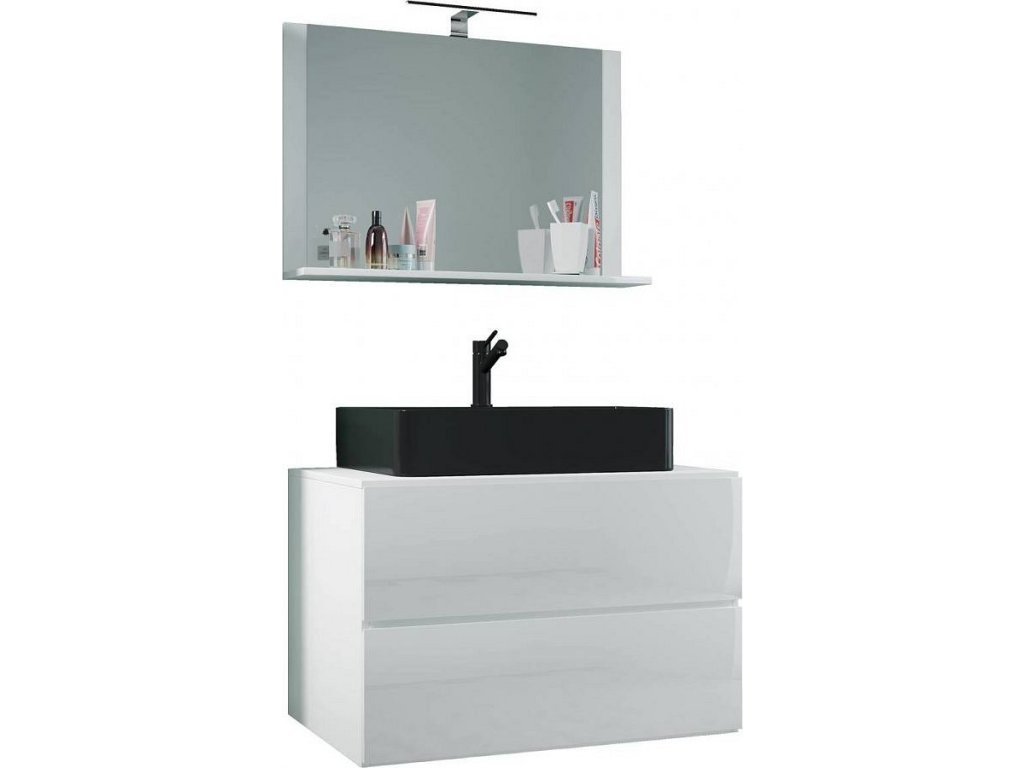 Sada obsahuje: - 1x skříňka pod umyvadlo se dvěma zásuvkami - 1x keramické umyvadlo - 1x zrcadlo s poličkou Sada koupelnového nábytku se skládá z umyvadlové skříňky se dvěma zásuvkami na robustních kovových kolejnicích. Nábytek je vybaven praktickou funkcí otevírání push-to-open. Moderní umyvadlo z masivní keramiky doplňuje sadu a vytváří tak dokonalou koupelnovou skříňku. Skříňka pod umyvadlo - Rozměry cca v. 52 x š. 80 x h. 52 cm - Korpus s robustním a odolným melaminovým povlakem - Dvě velké zásuvky s odolnými kovovými výsuvy Umyvadlo: - Rozměry cca v. 17 x š. 60 x h. 42 cm - Vyrobeno z robustní keramiky Zrcadlo: - Rozměry cca v. 55 x š. 80 x h. 17 cm - Jedna police pro perfektní organizaci - Sklo z bezpečnostního skla ESG Nábytek lze doplnit dalším koupelnovým nábytkem „VCM Lendas“ a osvětlením „VCM Blino“. Od 70. let 20. století se společnost VCM specializuje na návrh, výrobu a distribuci nábytku s férovým poměrem cena/výkon a již zkrášlila miliony domácností.