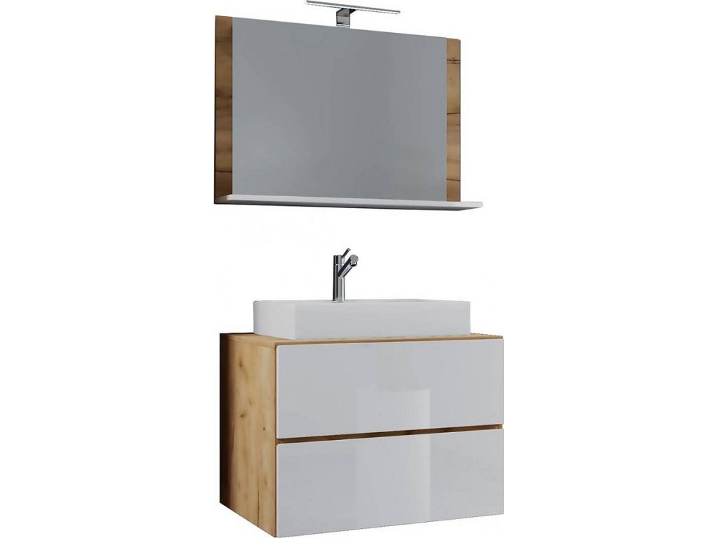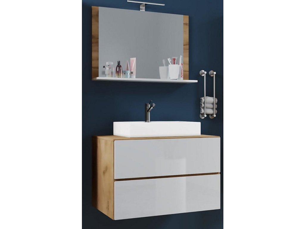 Sada obsahuje: - 1x spodní skříňka se dvěma zásuvkami - 1x keramické umyvadlo - 1x zrcadlo s poličkou Sada koupelnového nábytku se skládá ze spodní skříňky se dvěma zásuvkami na robustních kovových kolejnicích. Nábytek je vybaven praktickou funkcí otevírání stisknutím tlačítka. Moderní umyvadlo z masivní keramiky doplňuje nábytek a vytváří tak perfektní poutavý prvek v koupelně. Skříňka pod umyvadlo - Rozměry V 52 x Š 61 x H 46 cm nebo V 52 x Š 81 x H 46 cm - Korpus s robustním a necitlivým melaminovým povlakem - Dvě velké zásuvky s odolnými kovovými výsuvy Umyvadlo: - Rozměry V 17 x Š 40 x H 46 cm nebo cca V 17 x Š 60 x H 46 cm - Vyrobeno z robustní keramiky Zrcadlo: - Rozměry V 65 x Š 60 cm nebo cca V V. 65 x Š. 80 cm - Polička pro dokonalý pořádek - Sklo z bezpečnostního skla ESG Důraz na detail dělá z koupelnového nábytku VCM něco velmi výjimečného. Mycí prostor lze kombinovat s dalším nábytkem ze série „VCM Lendas“.