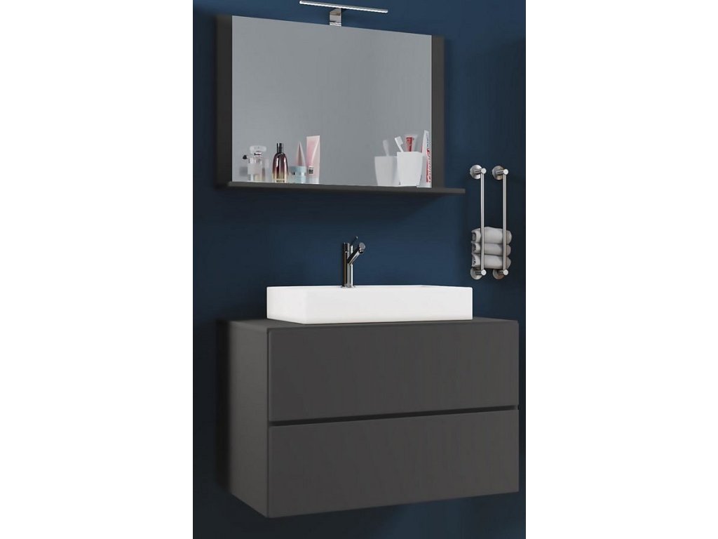 3dílná umyvadlová skříňka Lendas M 80 cm se zrcadlem, antracitová