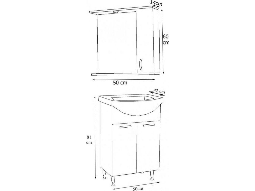 Sada se skládá z: - 1x skříňka pod umyvadlo se dvěma otočnými dvířky - 1x keramické umyvadlo - 1x zrcadlová skříňka s jedněmi otočnými dvířky. Koupelnová sada VCM "Lisalo" se skládá ze skříňky pod umyvadlo a umyvadla z masivní keramiky. Designér záměrně zvolil zakřivené umyvadlo, protože zvyšuje komfort. Skříňka pod umyvadlo má dvoje velké otočné dvířka a nabízí praktický úložný prostor. Úložný prostor a otočné dvířka na zrcadle nabízejí další prostor pro dokonalý pořádek v každodenním životě. Skříňka pod umyvadlo: - Rozměry V 81 x Š 50 x H 42 cm - Korpus s robustním a odolným melaminovým povlakem - Dvoje otočné dvířka Zrcadlová skříňka: - Rozměry V 60 x Š 50 x H 14 cm - Korpus s robustním a odolným melaminovým povlakem - Jedny otočné dvířka a jedna úložná přihrádka Umyvadlo: - Rozměry Š 55 x H 45 cm - Vyrobeno z robustní keramiky Koupelnovou sadu lze doplnit dalším koupelnovým nábytkem ze série "Lisalo". Společnost VCM se specializuje na návrh, výrobu a distribuci nábytku s férovým poměrem cena/výkon již od 70. let 20. století a již jím vyzdobila miliony domácností.