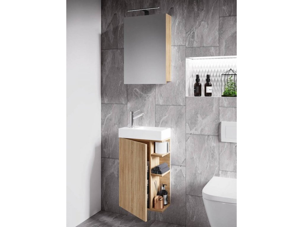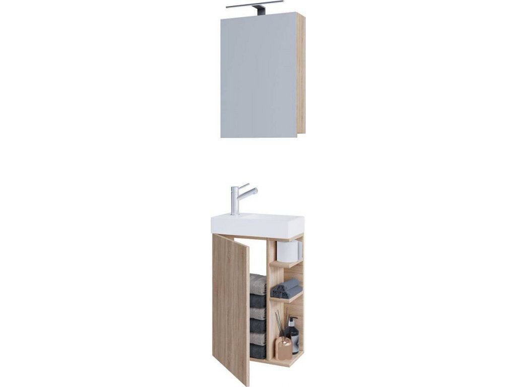 3dílná umyvadlová skřínka pro hosty Lumia se zrcadlem, dub Sonoma