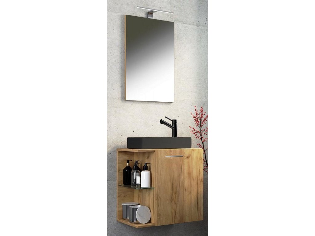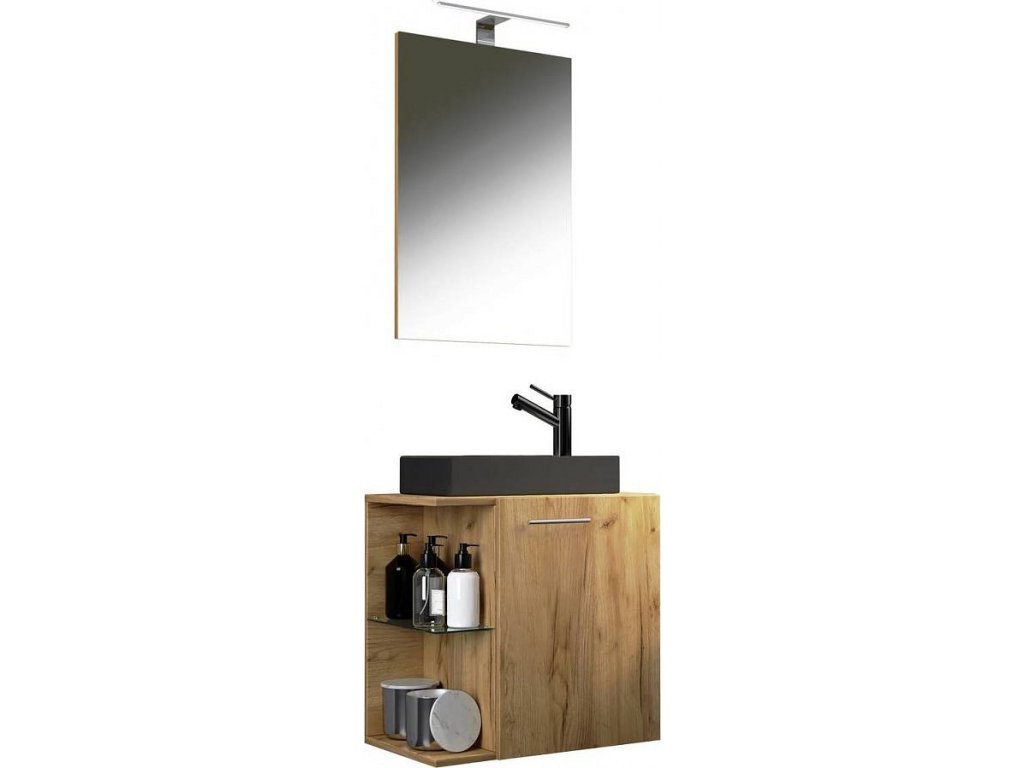 3dílné umyvadlo pro hosty Hausa BL se zrcadlem, dub medový
