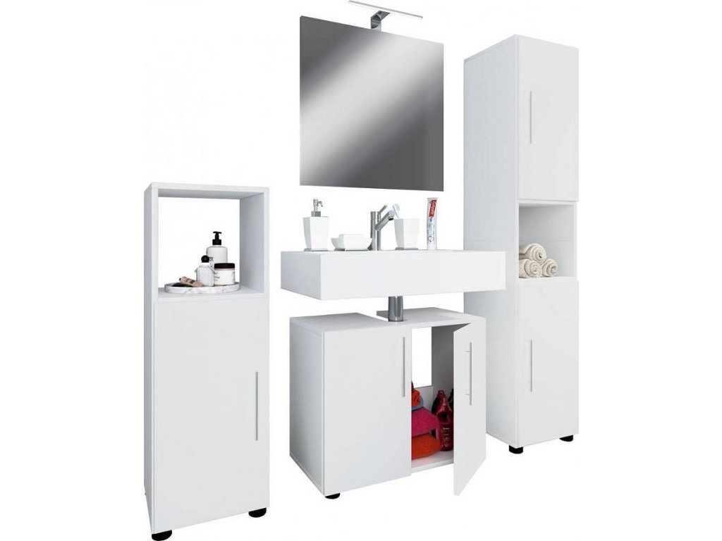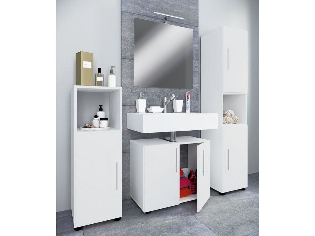 Sada se skládá z: - 1x spodní skříňka - 1x midi skříňka - 1x vysoká skříňka - 1x zrcadlo Koupelnová sada VCM "Flandu II" je nejen vizuálně absolutním vrcholem. Díky jednoduchému a nadčasovému designu se sada hodí téměř do každé koupelny. Díky melaminovému povlaku se koupelnový nábytek obzvláště snadno čistí a je odolný vůči vlhkosti. Spodní skříňka pod umyvadlo: - Rozměry cca v. 51 x š. 60 x h. 30 cm - Dvoje hladce se pohybující otočné dveře s jednou velkou přihrádkou - Stabilní a kvalitní zpracování Midi skříňka - Rozměry cca v. 93 x š. 31 x h. 30 cm - Jedny otočné dveře se dvěma přihrádkami - Jedna další otevřená přihrádka Vysoká skříňka - Rozměry cca v. 160 x š. 31 x h. 30 cm - Dvoje otočné dveře se dvěma přihrádkami - Jedna další otevřená přihrádka Zrcadlo - Rozměry cca v. 40 x š. 60 x h. 3 cm - Zrcadlo z odolného skla - Montážní kování pro bezpečnou montáž na zeď Důraz na detail dělá z koupelnového nábytku VCM něco velmi výjimečného. VCM se specializuje na design, výrobu a distribuci nábytku s férovým poměrem cena/výkon již od 70. let 20. století a vyzdobila jím již miliony domácností.