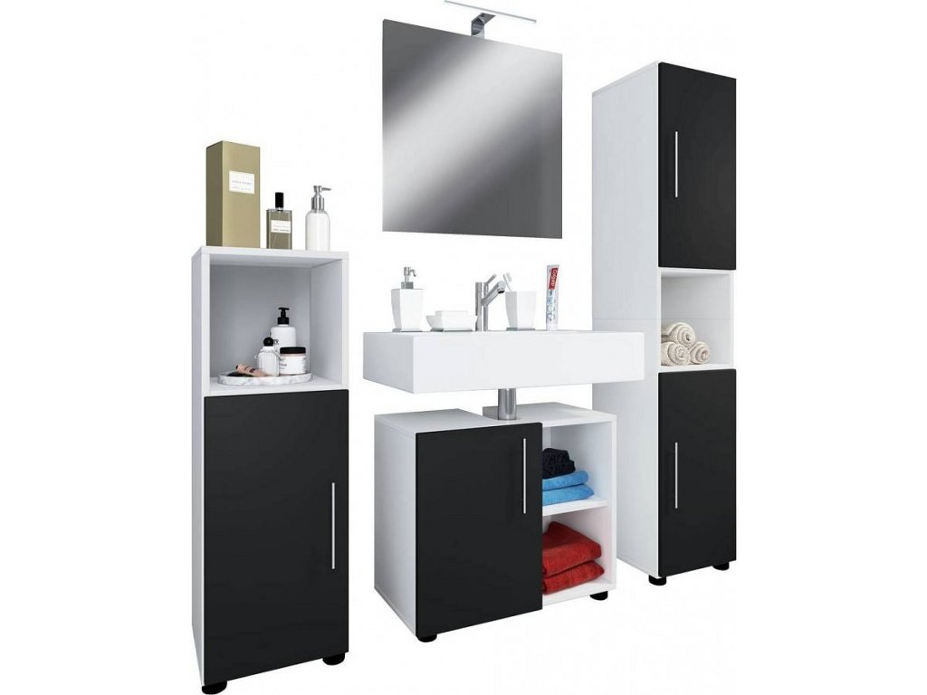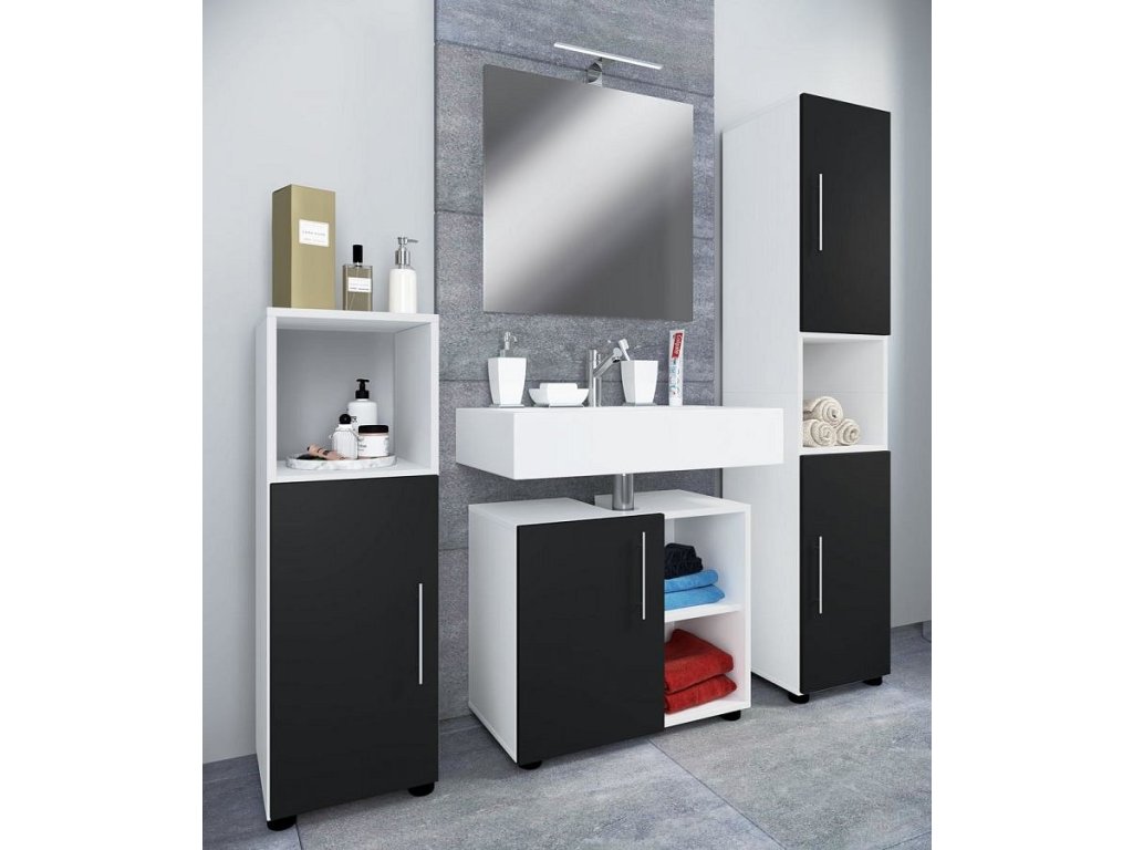 Sada se skládá z: - 1x spodní skříňka - 1x midi skříňka - 1x vysoká skříňka - 1x zrcadlo Koupelnová sada VCM "Flandu II" je nejen vizuálně absolutním vrcholem. Díky jednoduchému a nadčasovému designu se sada hodí téměř do každé koupelny. Díky melaminovému povlaku se koupelnový nábytek obzvláště snadno čistí a je odolný vůči vlhkosti. Spodní skříňka pod umyvadlo: - Rozměry cca v. 51 x š. 60 x h. 30 cm - Dvoje hladce se pohybující otočné dveře s jednou velkou přihrádkou - Stabilní a kvalitní zpracování Midi skříňka - Rozměry cca v. 93 x š. 31 x h. 30 cm - Jedny otočné dveře se dvěma přihrádkami - Jedna další otevřená přihrádka Vysoká skříňka - Rozměry cca v. 160 x š. 31 x h. 30 cm - Dvoje otočné dveře se dvěma přihrádkami - Jedna další otevřená přihrádka Zrcadlo - Rozměry cca v. 40 x š. 60 x h. 3 cm - Zrcadlo z odolného skla - Montážní kování pro bezpečnou montáž na zeď Důraz na detail dělá z koupelnového nábytku VCM něco velmi výjimečného. VCM se specializuje na design, výrobu a distribuci nábytku s férovým poměrem cena/výkon již od 70. let 20. století a vyzdobila jím již miliony domácností.