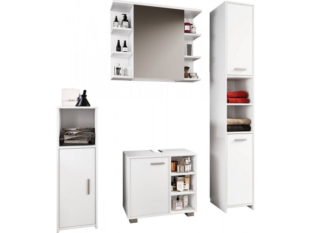 Sada se skládá z: - 1x skříňka pod umyvadlo - 1x střední skříňka - 1x vysoká skříňka - 1x zrcadlová skříňka. Koupelnová sada VCM "Zalo I" není jen vizuálním lákadlem. Díky jednoduchému a nadčasovému designu se sada hodí téměř do každé koupelny. Díky melaminovému povlaku se koupelnový nábytek obzvláště snadno čistí a je odolný vůči vlhkosti. Skříňka pod umyvadlo: - Rozměry cca v. 55 x š. 60 x h. 30 cm - Jedny otočné dveře s velkou přihrádkou - Tři další otevřené přihrádky Střední skříňka - Rozměry cca v. 95 x š. 30 x h. 30 cm - Jedny otočné dveře se třemi přihrádkami - Jedna další otevřená přihrádka Vysoká skříňka - Rozměry cca v. 180 x š. 30 x h. 30 cm - Dvoje otočné dveře se dvěma přihrádkami - Dvě další otevřené přihrádky Zrcadlová skříňka z bezpečnostního skla ESG - Rozměry cca v. 64 x š. 80 x h. 21 - Jedna otočná dvířka se dvěma přihrádkami - Dalších šest otevřených přihrádek Důraz na detail dělá z koupelnového nábytku VCM něco velmi výjimečného. VCM se specializuje na design, výrobu a distribuci nábytku s férovým poměrem cena/výkon již od 70. let 20. století a vyzdobila jím již miliony domácností.