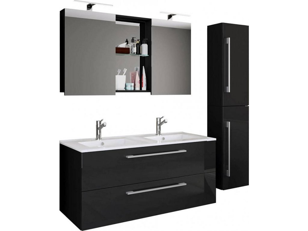 4dílná umyvadlová skříňka Budasi s vysokou skříňkou, umyvadlová, černá