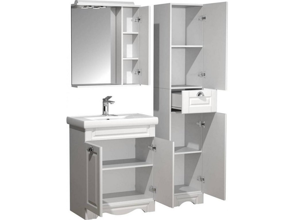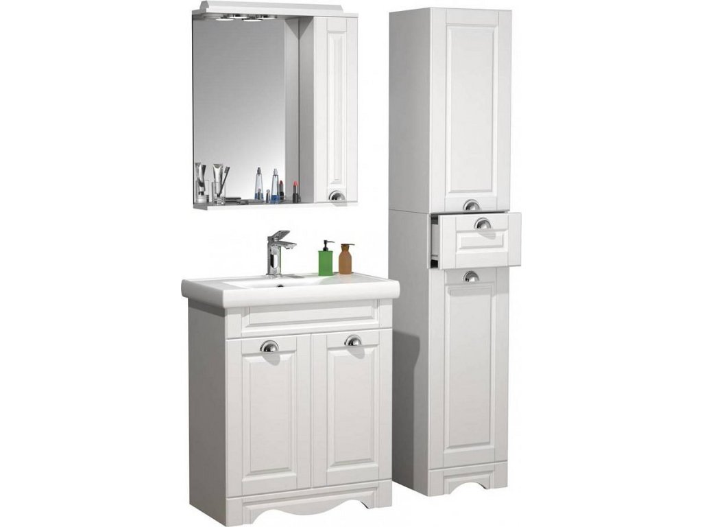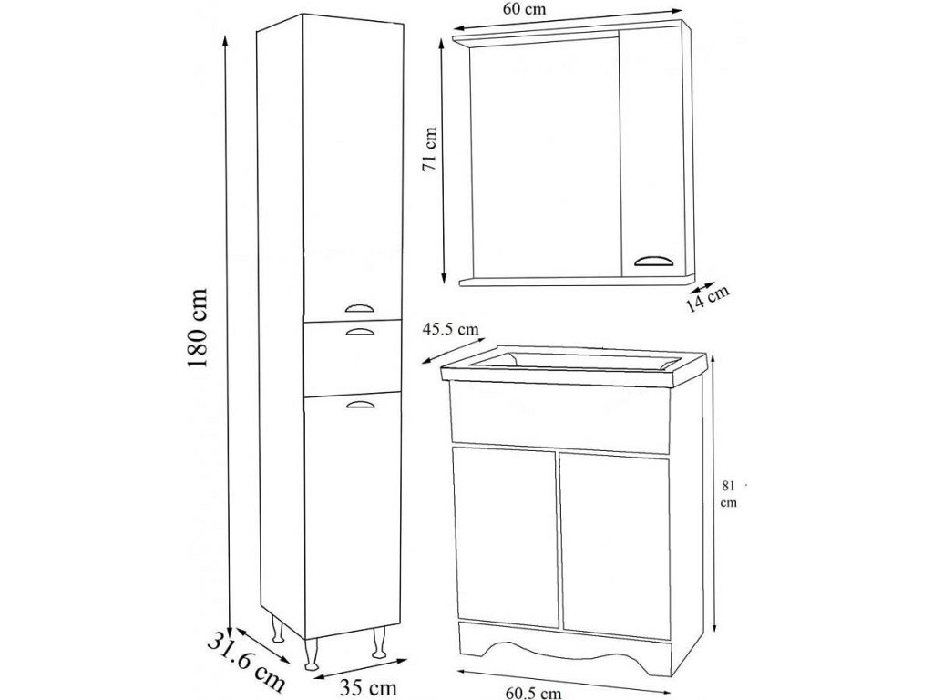 Sada se skládá z: - 1x spodní skříňky se dvěma otočnými dvířky ve venkovském stylu - 1x keramického umyvadla - 1x zrcadlové skříňky - 1x vysoké skříňky. Koupelnová sada VCM "Casalo" se skládá ze spodní skříňky a umyvadla z masivní keramiky, zrcadlové skříňky a vysoké skříňky. Designérovi se podařilo vytvořit osobitý vzhled ve venkovském stylu, který promění každou koupelnu v harmonickou oázu pohody. Skříňka pod umyvadlo: - Rozměry v. 81 x š. 61 x h. 46 cm - Korpus s robustním a odolným melaminovým povlakem - Dvoje otočné dveře ve venkovském stylu Umyvadlo: - Rozměry Š. 60 x H. 46 cm - Vyrobeno z robustní keramiky Rozměry zrcadlové skříňky: - V. 71 x Š. 61 x H. 14 cm - Korpus s robustním a odolným melaminovým povlakem - Jedny otočné dveře ve venkovském stylu Rozměry vysoké skříňky: - V. 180 x š. 35 x h. 32 cm - Korpus s robustním a odolným melaminovým povlakem - Dvoje otočné dveře a jedna zásuvka ve venkovském stylu Koupelnovou sestavu lze doplnit dalším koupelnovým nábytkem ze série „Casalo“. VCM se specializuje na design, výrobu a distribuci nábytku s férovým poměrem cena/výkon již od 70. let 20. století a vyzdobila jím miliony domácností.