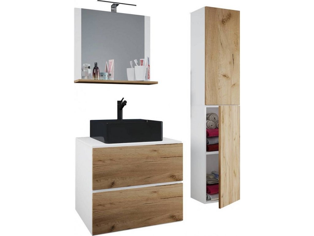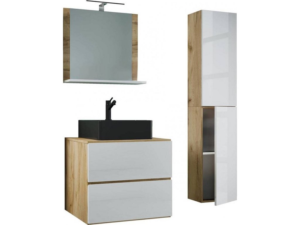 4dílná umyvadlová skříňka Lendas BL L se zrcadlem 60 cm + vysoká skříňka, dub medový