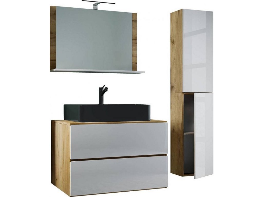 4dílná umyvadlová skříňka Lendas BL L se zrcadlem 80 cm + vysoká skříňka, dub medový