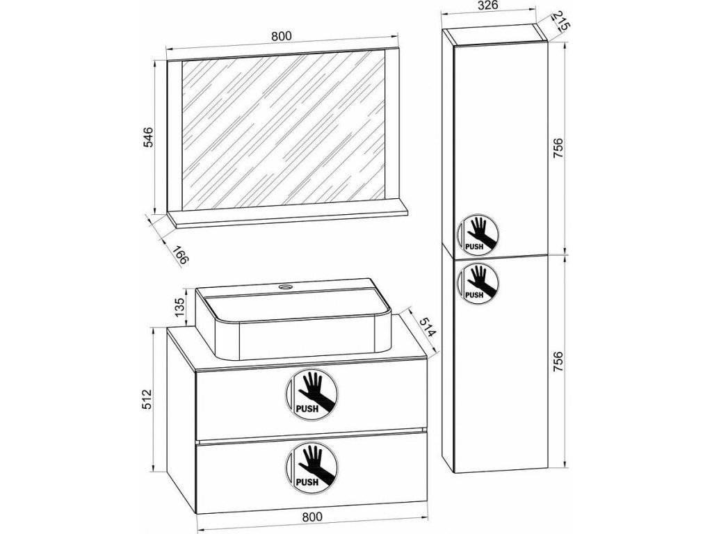 Sada se skládá z: - 1x spodní skříňky se dvěma zásuvkami - 1x keramického umyvadla - 1x zrcadla s poličkou - 1x vysoké skříňky Sada koupelnového nábytku se skládá z vysoké skříňky a spodní skříňky se dvěma zásuvkami na stabilních kovových kolejnicích. Nábytek je vybaven praktickou funkcí otevírání stisknutím tlačítka. Moderní umyvadlo z masivní keramiky doplňuje nábytek a vytváří tak perfektní poutavý prvek v koupelně. Skříňka pod umyvadlo - Rozměry V 52 x Š 61 x H 46 cm nebo V 52 x Š 81 x H 46 cm - Korpus s robustním a necitlivým melaminovým povlakem - Dvě velké zásuvky s odolnými kovovými výsuvy Umyvadlo - Rozměry V 17 x Š 40 x H 46 cm nebo cca V 17 x Š 60 x H 46 cm - Vyrobeno z robustní keramiky Zrcadlo - Rozměry V 65 x Š 60 cm nebo cca V V. 65 x Š. 80 cm - Police pro dokonalý pořádek - Sklo z bezpečnostního skla ESG Vysoká skříňka - Rozměry cca V. 150 x Š. 33 x H. 22 cm - 2 police pro rozdělení Důraz na detail dělá z koupelnového nábytku VCM něco velmi výjimečného. Mycí prostor lze kombinovat s dalším nábytkem ze série „VCM Lendas“.