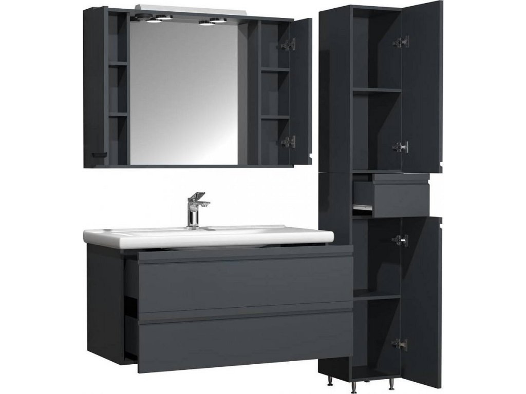 Sada obsahuje: - 1x skříňka pod umyvadlo se dvěma zásuvkami - 1x keramické umyvadlo - 1x zrcadlová skříňka - 1x vysoká skříňka. Koupelnová sada VCM "Silora" se skládá ze spodní skříňky se dvěma zásuvkami a umyvadlem z masivní keramiky, zrcadlové skříňky a vysoké skříňky. Designér záměrně zvolil bezúchytková čela, aby nábytek nadčasově splynul s okolím. Skříňka pod umyvadlo: - Rozměry V 54 x Š 100 x H 46 cm - Korpus s robustním a odolným melaminovým povlakem - Dvě bezúchytkové zásuvky Umyvadlo: - Rozměry Š 100 x H 46 cm - Vyrobeno z robustní keramiky Zrcadlová skříňka: - Rozměry V 71 x Š 100 x H 14 cm - Korpus s robustním a odolným melaminovým povlakem - Dvoje výklopné dveře Vysoká skříňka: - Rozměry V 180 x Š 30 x H. 32 cm - Korpus s robustním a odolným melaminovým povlakem - Dvoje otočné dveře a jedna zásuvka Koupelnovou sestavu lze doplnit dalším koupelnovým nábytkem ze série „Silora“. VCM se specializuje na návrh, výrobu a distribuci nábytku s férovým poměrem cena/výkon již od 70. let 20. století a vyzdobila jím miliony domácností.