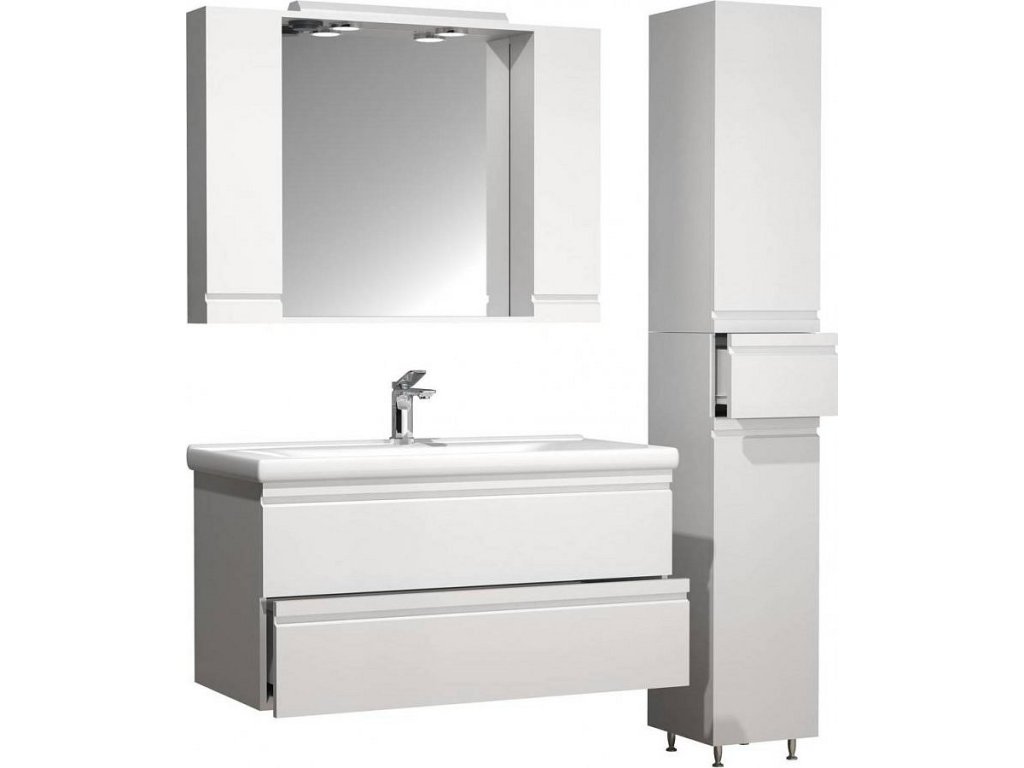 Sada obsahuje: - 1x skříňka pod umyvadlo se dvěma zásuvkami - 1x keramické umyvadlo - 1x zrcadlová skříňka - 1x vysoká skříňka. Koupelnová sada VCM "Silora" se skládá ze spodní skříňky se dvěma zásuvkami a umyvadlem z masivní keramiky, zrcadlové skříňky a vysoké skříňky. Designér záměrně zvolil bezúchytková čela, aby nábytek nadčasově splynul s okolím. Skříňka pod umyvadlo: - Rozměry V 54 x Š 100 x H 46 cm - Korpus s robustním a odolným melaminovým povlakem - Dvě bezúchytkové zásuvky Umyvadlo: - Rozměry Š 100 x H 46 cm - Vyrobeno z robustní keramiky Zrcadlová skříňka: - Rozměry V 71 x Š 100 x H 14 cm - Korpus s robustním a odolným melaminovým povlakem - Dvoje výklopné dveře Vysoká skříňka: - Rozměry V 180 x Š 30 x H. 32 cm - Korpus s robustním a odolným melaminovým povlakem - Dvoje otočné dveře a jedna zásuvka Koupelnovou sestavu lze doplnit dalším koupelnovým nábytkem ze série „Silora“. VCM se specializuje na návrh, výrobu a distribuci nábytku s férovým poměrem cena/výkon již od 70. let 20. století a vyzdobila jím miliony domácností.