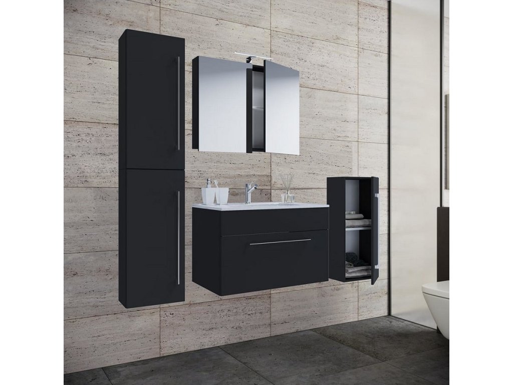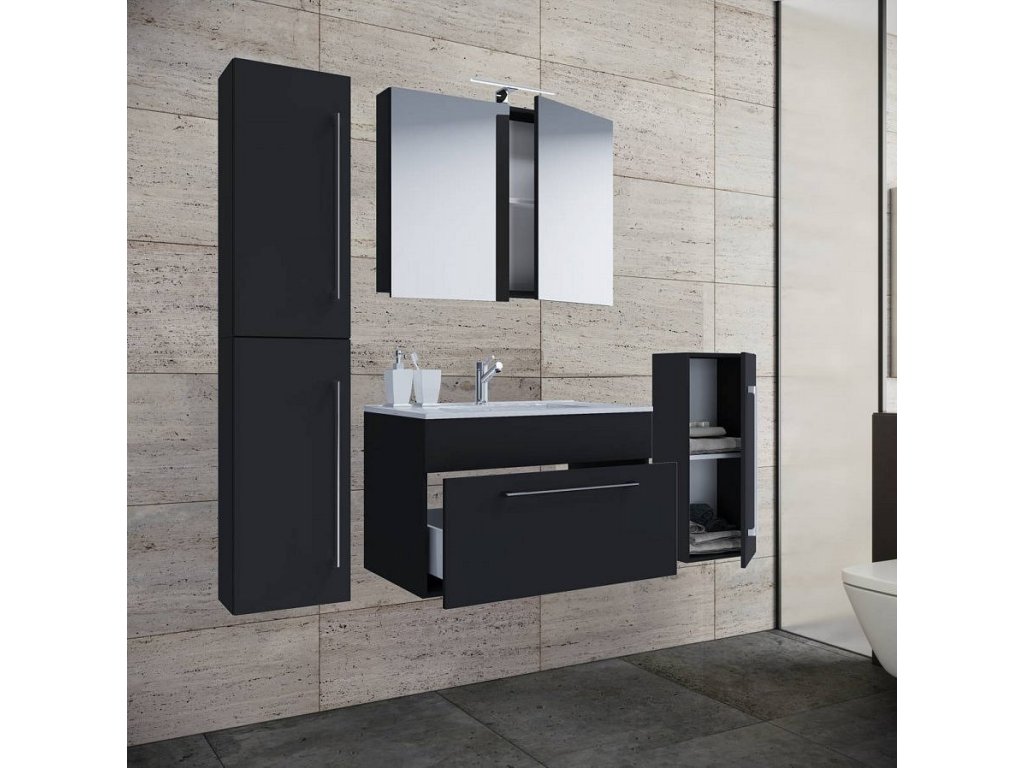 5dílná stojící umyvadlová skříňka Badinos 1 zásuvka 60 cm se zrcadlem, střední a vysokou skříňkou, černá