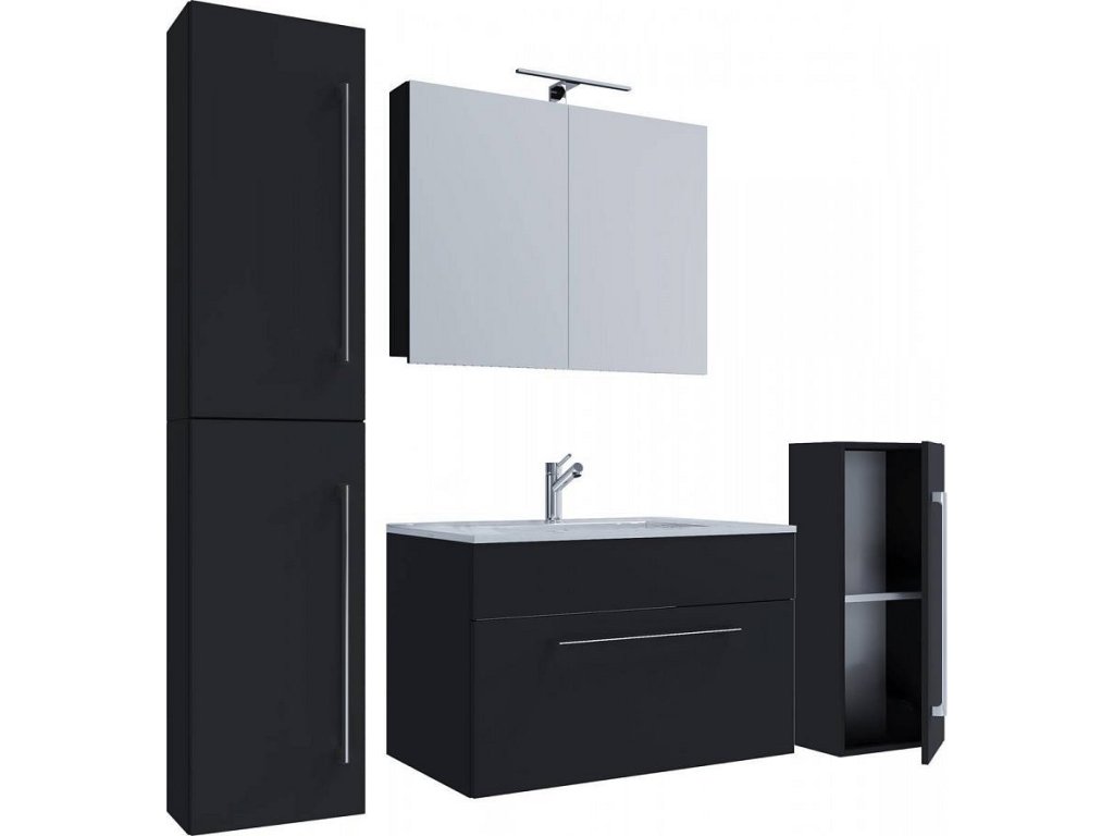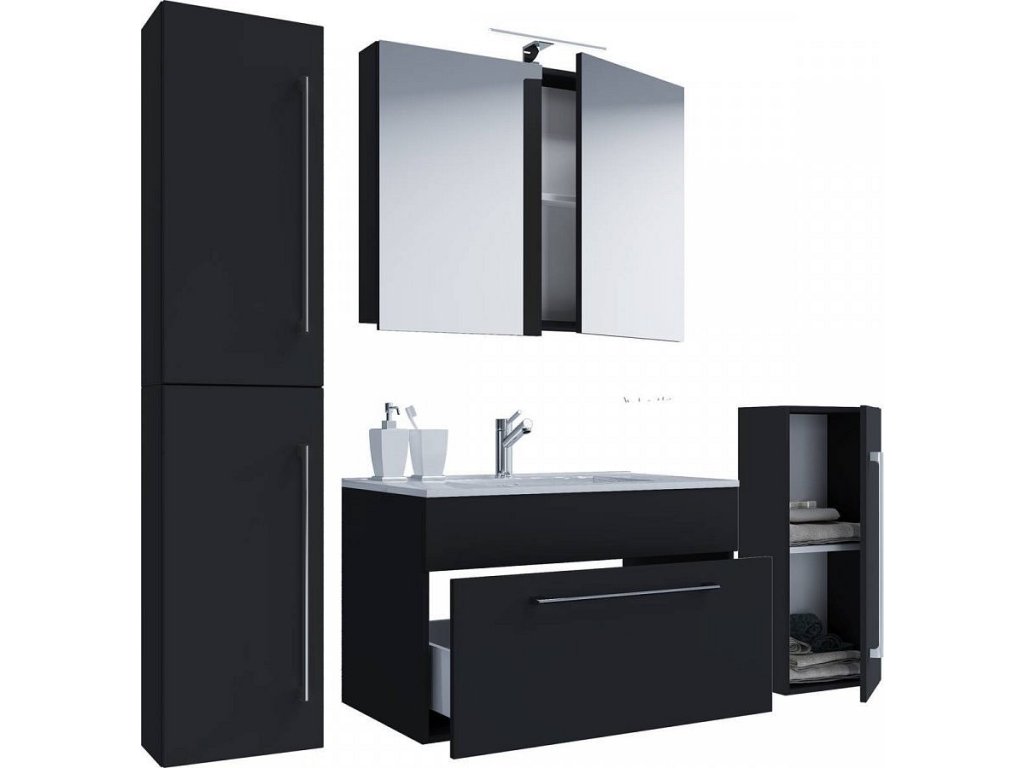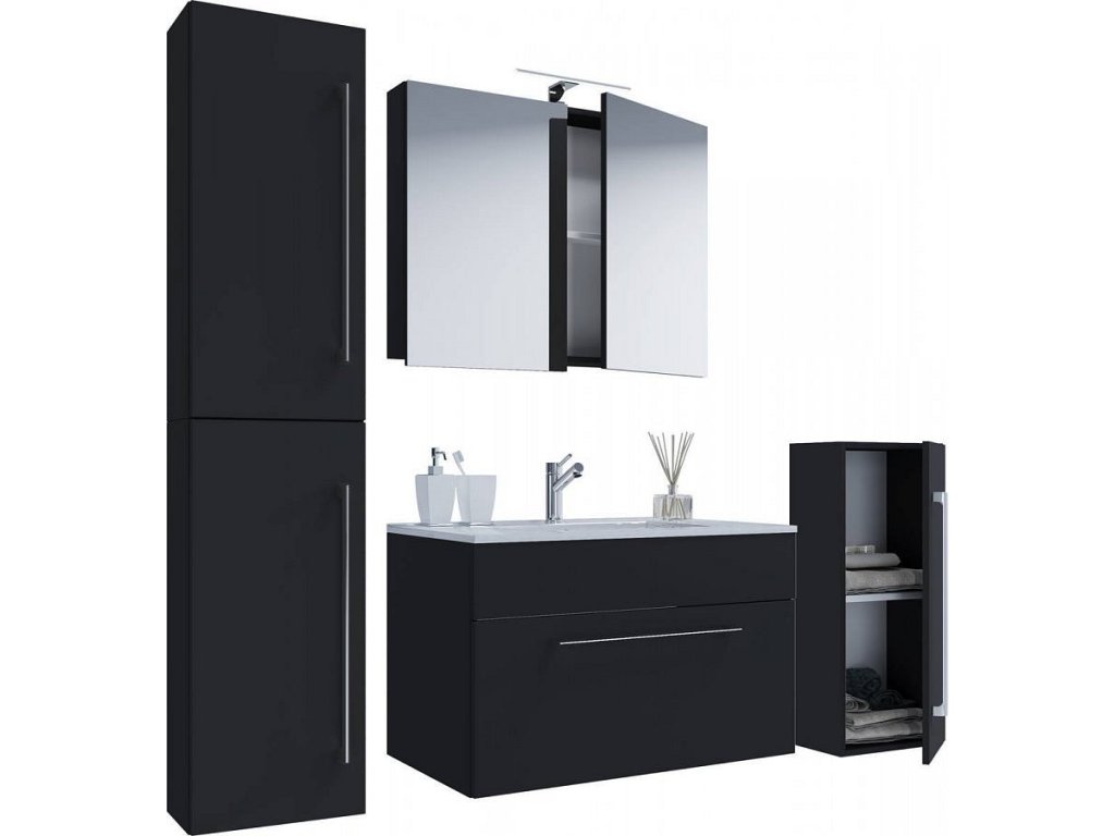 5dílná stojící umyvadlová skříňka Badinos 1 zásuvka 80 cm se zrcadlem, střední a vysokou skříňkou, černá