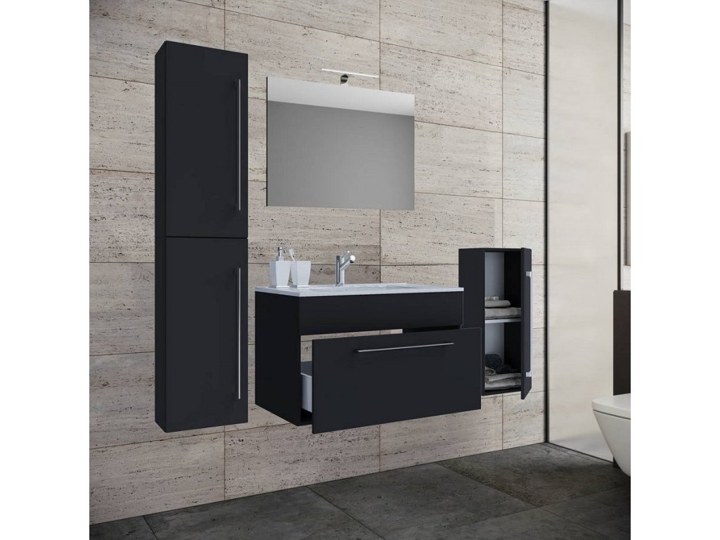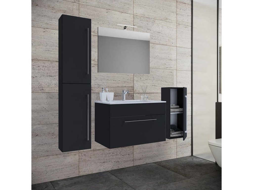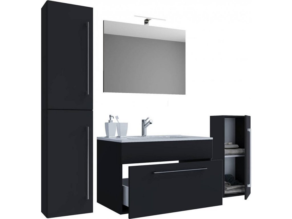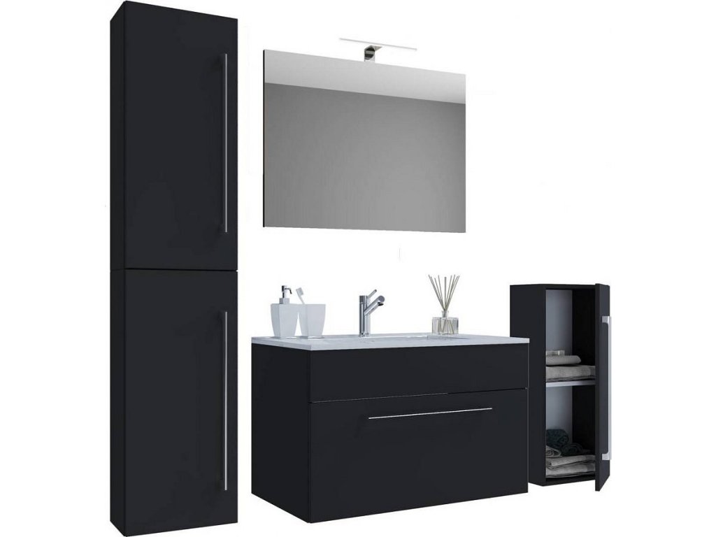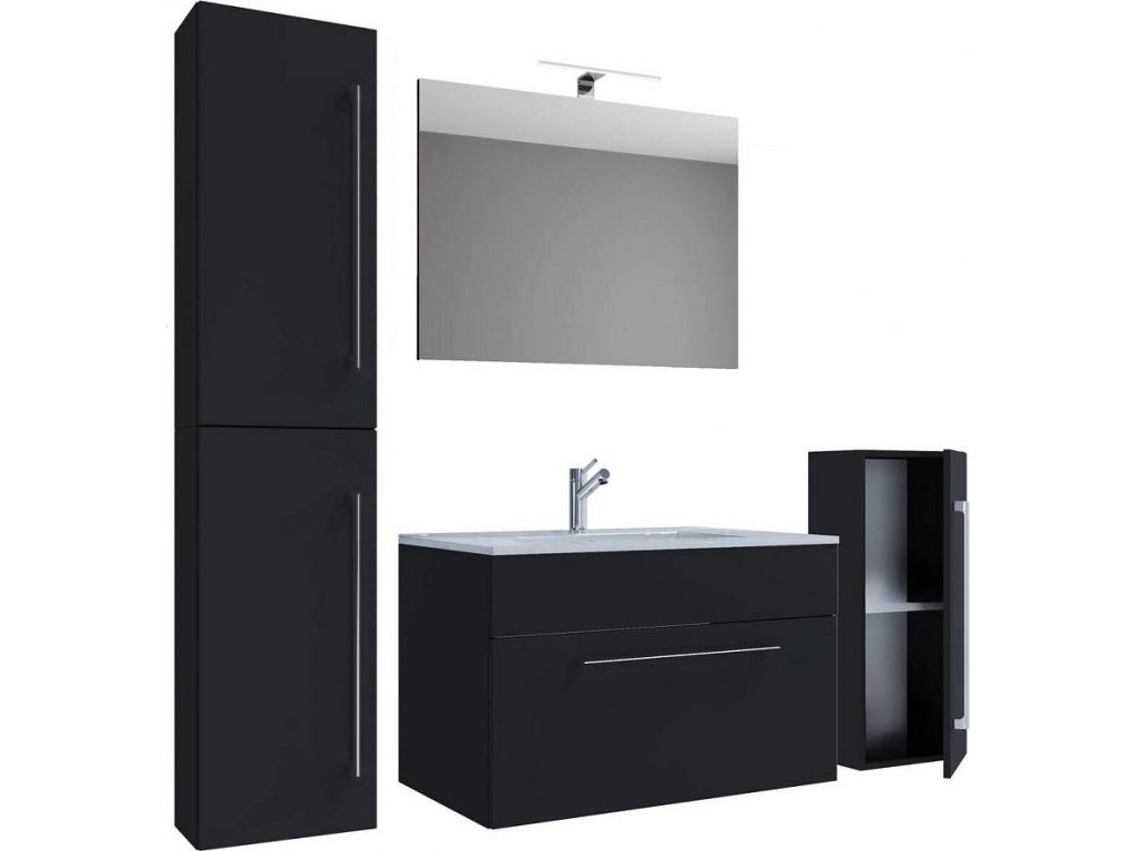 5dílná umyvadlová skříňka Badinos 1 zásuvka 60 cm se zrcadlem, střední a vysokou skříňkou, černá