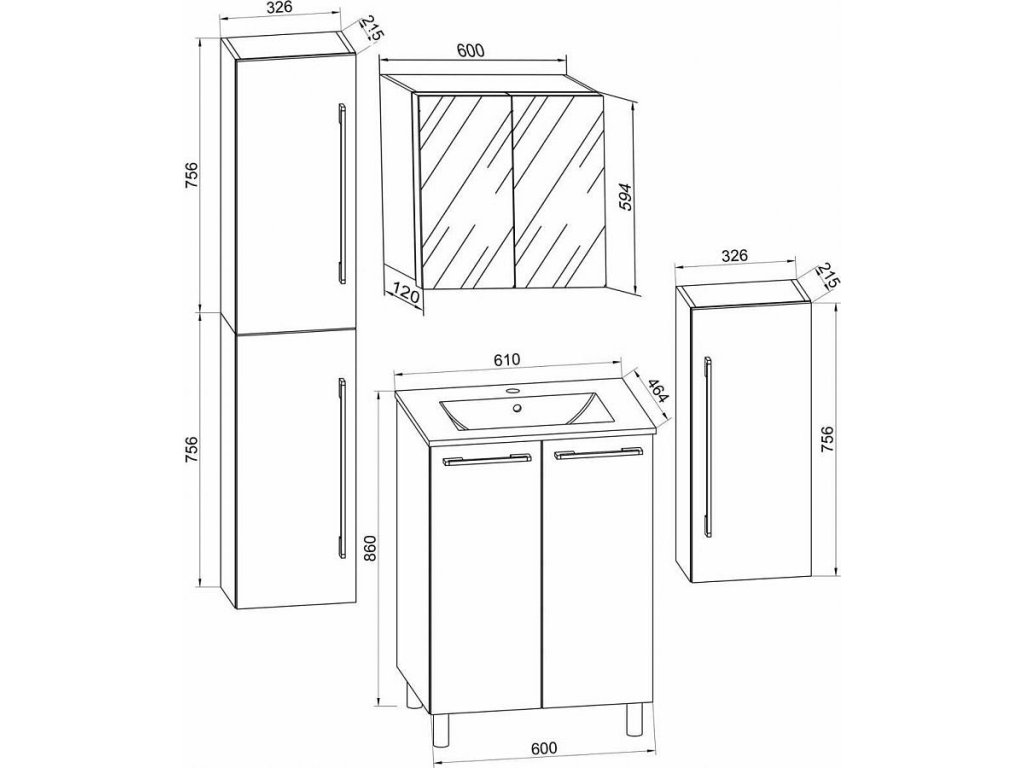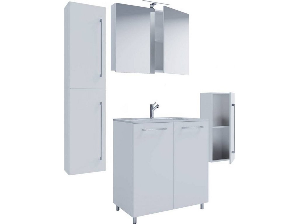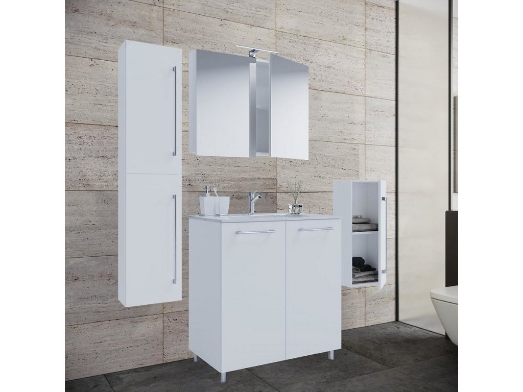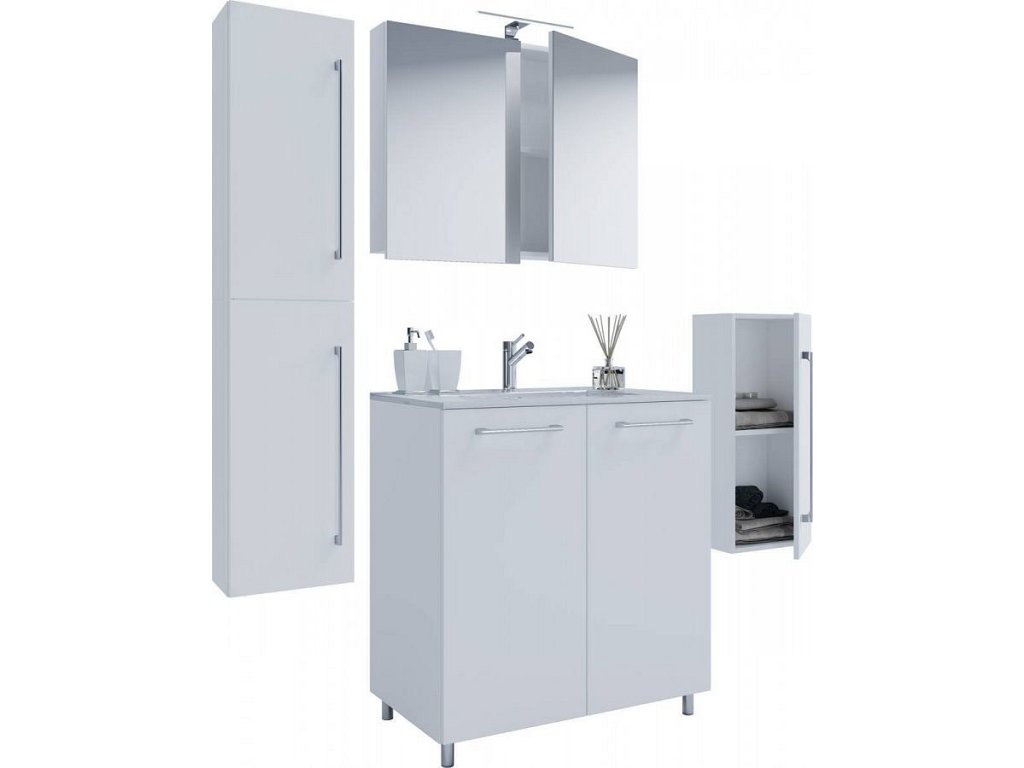 5dílná umyvadlová skříňka Badinos 2 dveře 60 cm se zrcadlem, střední a vysokou skříňkou, bílá
