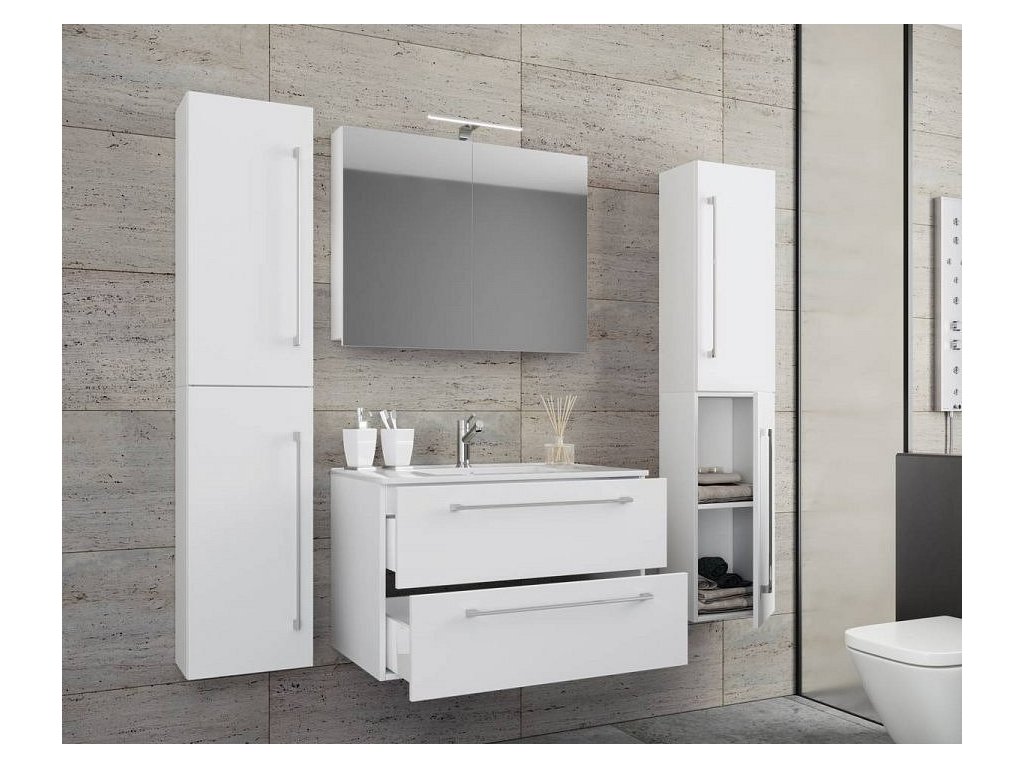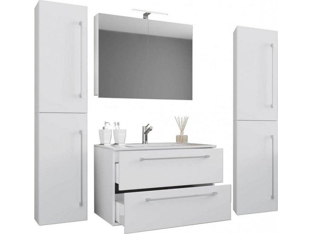 5dílná umyvadlová skříňka Badinos 2 zásuvky 60 cm se zrcadlem a 2 vysokými skříňkami, bílá