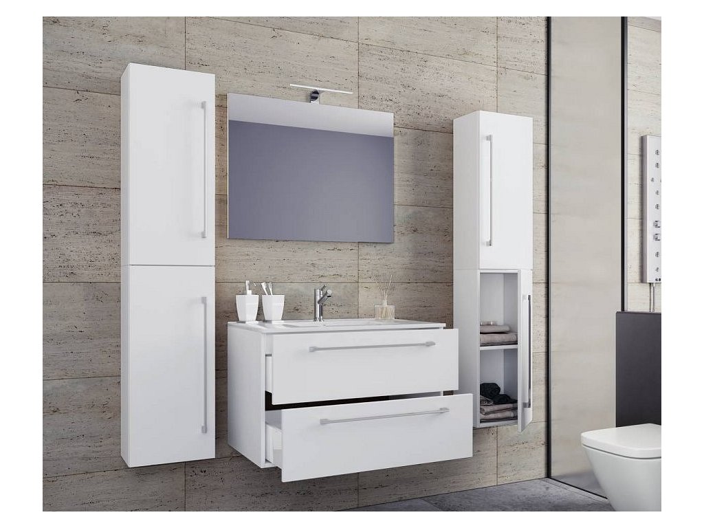 5dílná umyvadlová skříňka Badinos 2 zásuvky 80 cm se zrcadlem a 2 vysokými skříňkami, bílá