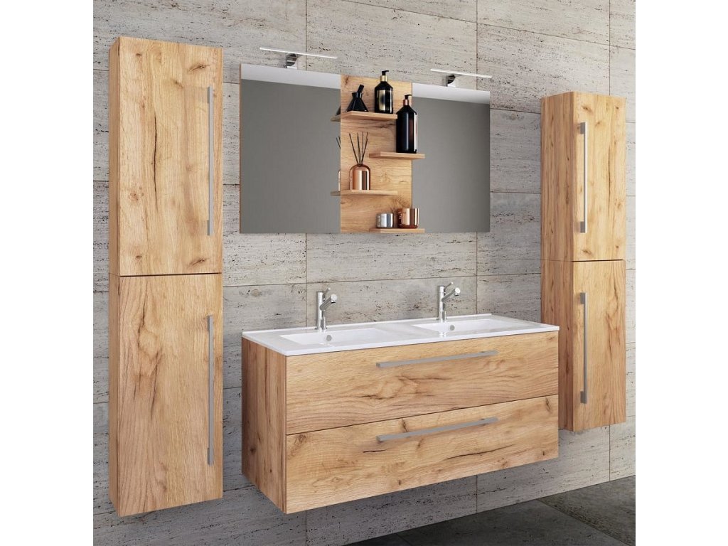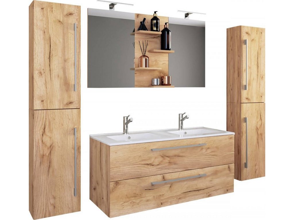 5dílná umyvadlová skříňka Budasi se 2 vysokými skříňkami, dub medový