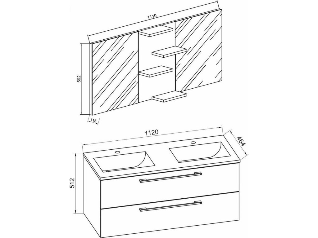 Set bestehend aus: - 1x Unterschrank mit zwei Schubladen - 1x Doppelwaschbecken aus Keramik - 1x Spiegel mit vier versetzten Ablageböden - 2x Hochschrank mit je zwei Türen und vier Fächern Das VCM Badememhöbel-Sus Unterschrank mit zwei Schubladen auf robusten Metallschienen, einem Spiegel mit vier versetzten Ablageböden sowie zwei Hochschränken mit drahokamy zwei Türen und vier Fächern. Als Eyecatcher jako moderní Doppelwaschbecken aus Masivní Keramik, das Ihrem Badezimmer ein ganz besonderes Ambiente verleiht. Waschtisch-Unterschrank - Maße ca. V. 52 x Š. 111 x H. 46 cm - Korpus mit robuster und unempfindlicher Melamin-Beschichtung - Zwei große Schubladen mit langlebigen Metallauszügen Doppelwaschbecken: - Maße ca. V. 17 x Š. 110 x H. 46 cm - Aus robuster Keramik Spiegel - Maska V. 59 x Š. 112 cm - Vier Fachböden für die perfekte Ordnung Maße je W. 20 cm x T. 10 cm - Aus ESG-Sicherheitsranks: Maße V. 150 x Š. 33 x H. 22 cm - Zwei Fachböden zur Unterteilung Die Liebe zum Detail macht ein VCM-Badmöbel zu etwas ganz Besonderem. Der Waschplatz kann mit weiteren Möbeln aus der Serie "VCM Budasi" kombinovaná werden. VCM hat sich seit den 70er-Jahren auf die Konstruktion, Production und Vertrieb von Möbeln mit einem fairen Preis/Leistungsverhältnis spezialisiert und damit bereits Millionen Haushalte verschönert.