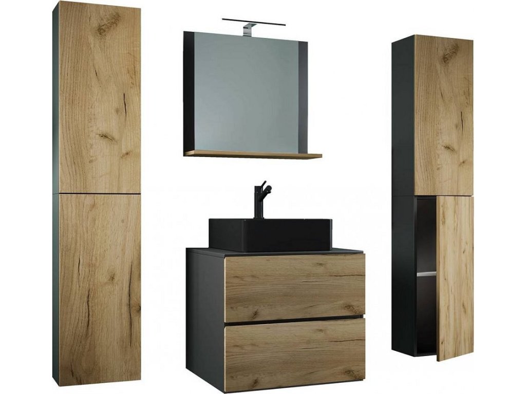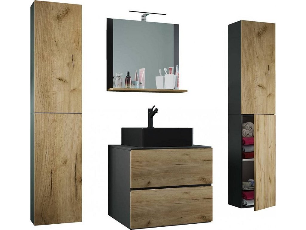 5dílná umyvadlová skříňka Lendas BL XL 60 cm se zrcadlem a 2 vysokými skříňkami, antracitová
