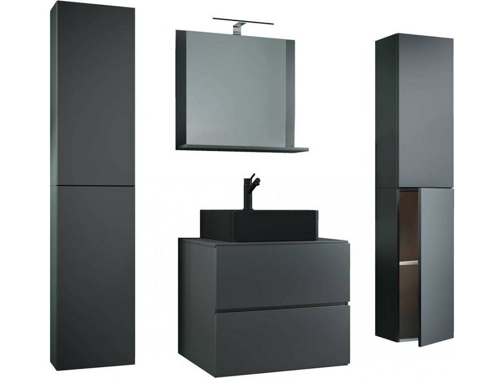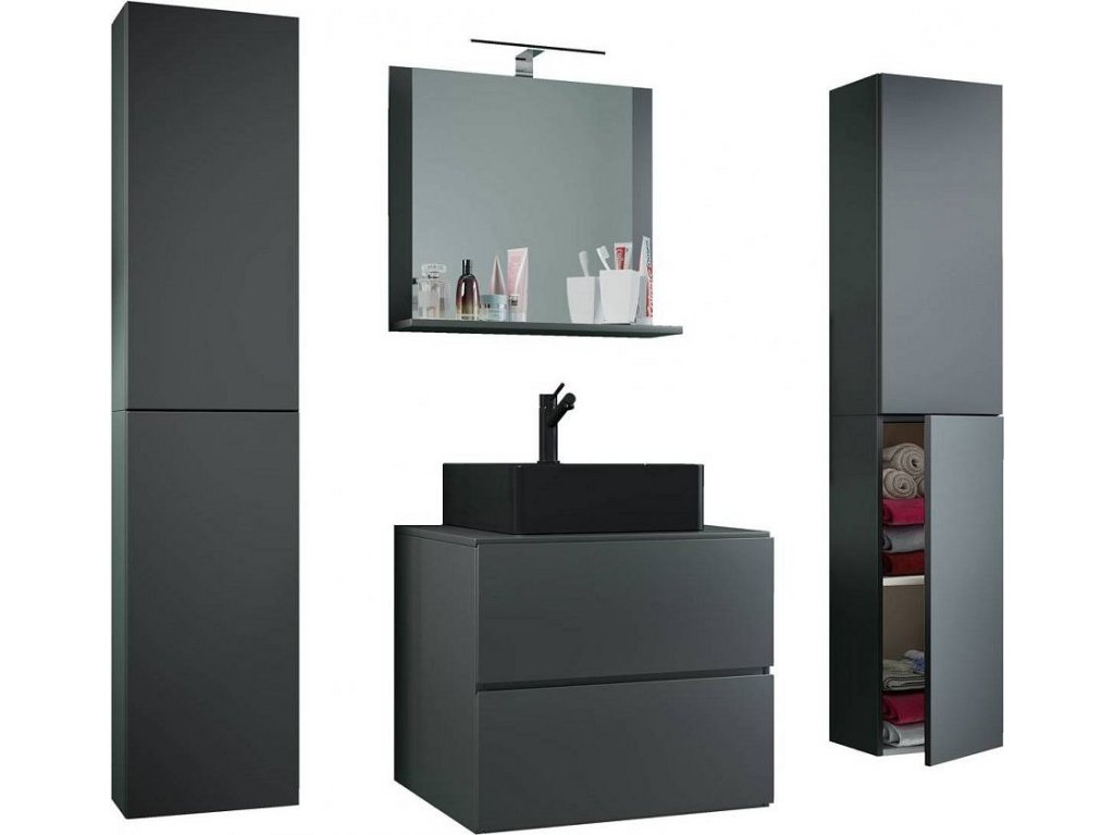 5dílná umyvadlová skříňka Lendas BL XL 60 cm se zrcadlem a 2 vysokými skříňkami, antracitová